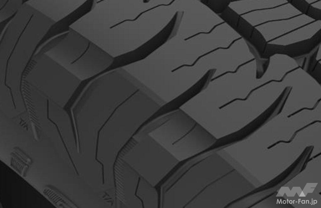 舗装路での高い走行性能だけでなく、砂利道やキャンプ場などの非舗装路での走行も想定した性能を実現。トレッド部は舗装路での快適性と安全性を確保しつつ、“セレイテッド・ショルダー・デザイン”が非舗装路における高いグリップを確保する。