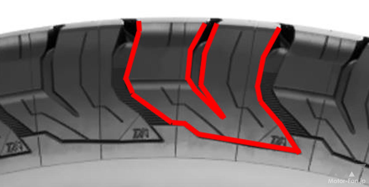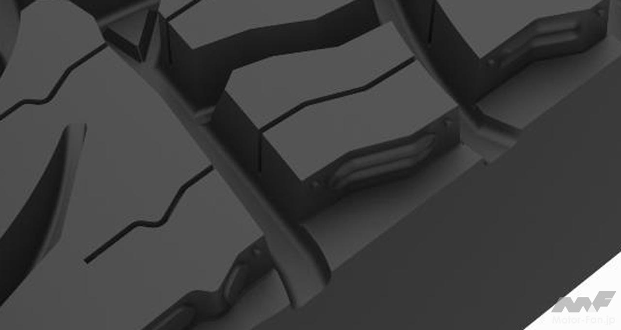 最適化されたトレッドデザインと“フルデプス・3Dロッキングサイプ”を採用し、ブロックの倒れこみを抑制することで優れたトレッドブロックの安定性を実現。偏摩耗を抑制し、優れたロングライフ性能と快適な乗り心地を発揮する。