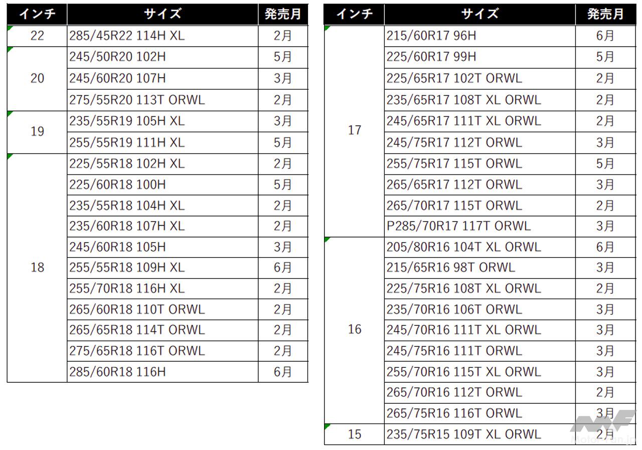 深く刻まれたフルデプス・3Dロッキングサイプは路面の水膜を除去し、天候の変化にとらわれず摩耗末期まで安定した高いグリップを発揮。シビアスノータイヤの証である「スリーピークマウンテンスノーフレークマーク」と「M+S」が刻印されている。