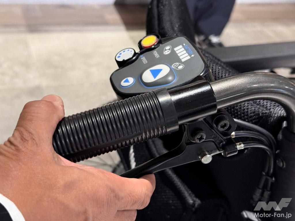 なお、後ろに立って操作する介助者側の操作部分の変更も大きい。使用者と同じ液晶画面を搭載し、アクセル操作はボタン操作からレバー操作へと変更。このレバーによる操作は、パニック時などに必要以上に強く握ってしまったときにはブレーキが掛かるフェールセーフ機能が盛り込まれている。