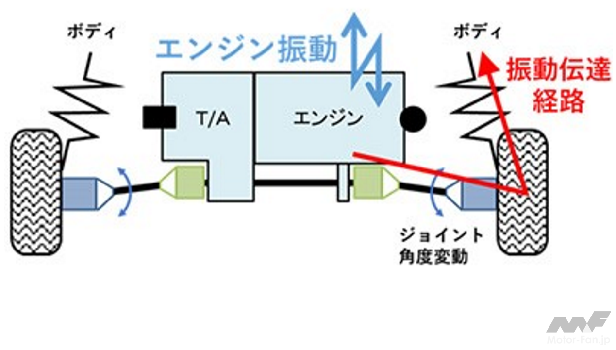 これによりトルク負荷時にジョイントの微小な角度変動に伴って発生する折り曲げ抵抗を低減でき、アイドリング時のエンジン振動が車体に伝わりにくくなっている。アイドル振動低減を達成したことで、快適な乗り心地に貢献。また、内部摩擦力を低減したことで燃費向上にも貢献している。