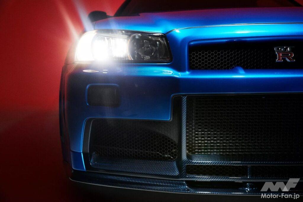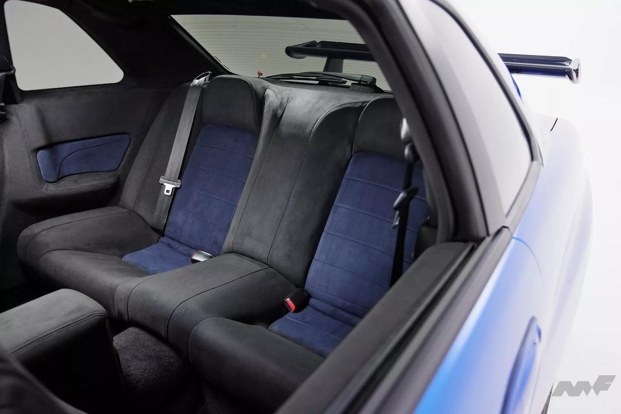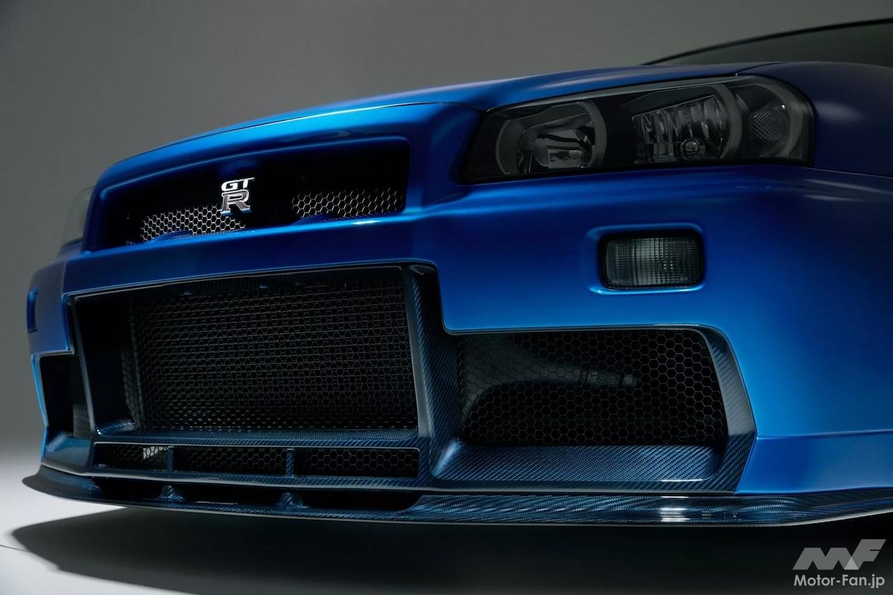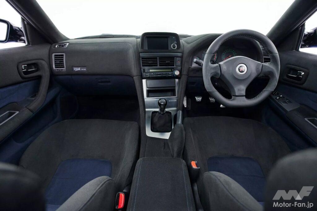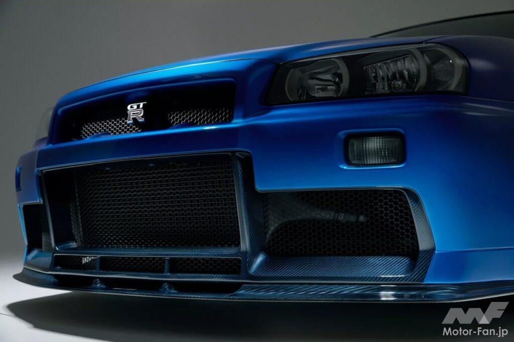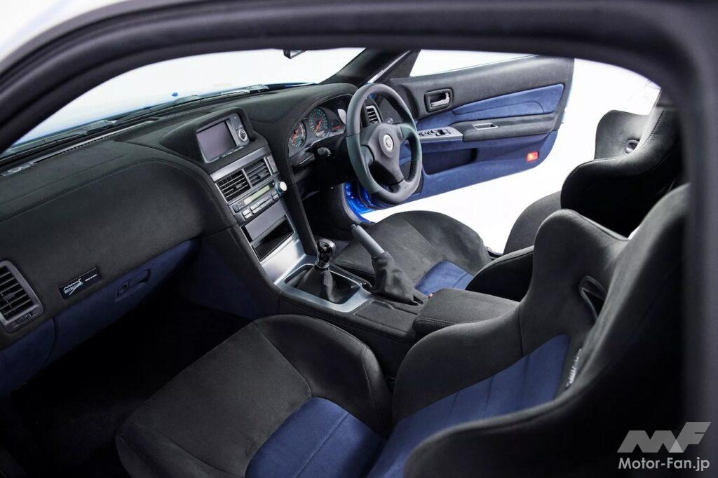 展示車両は、スカイラインで最も象徴的な色のひとつである「ベイサイドブルー」をまとっている。Built by LegendsがR34 GT-Rを近代化して活性化するために使用する方式は、アメリカのマッスルカーやポルシェ911などを専門とする他のレストモッドスタイルと似ている。まずドナーカーを完全に分解し、次にGT-Rの分野で定評のある会社であるガレージ ヨシダによってシャーシが修復および強化される。次に新しいストラットタワーセットが取り付けられ、シャーシをウェットブラストするほか、スポット溶接により剛性アップが図られるのだ。