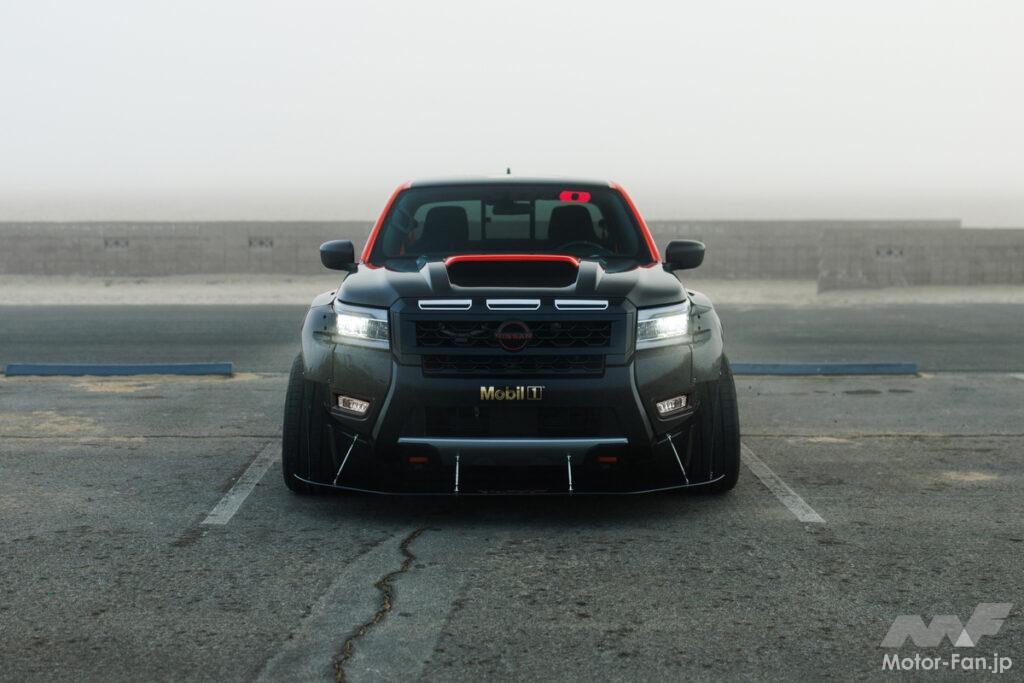 往年のスポーツ&マッスルトラックのスピリットを体現したターマックコンセプトは、日産モータースポーツ、日産デザインアメリカ、フォルスバーグ・レーシングのコラボレーションによる1台限りのストリートトラックだ。2025年新色のアフターバーンオレンジのペイントが目を引き、アグレッシブなワイドボディキット、通気口付きボンネット、ルーフキャップ、スポイラー、ホイール、エアロパーツなど、随所に施された贅沢なカーボンファイバーのアクセントが強調されている。