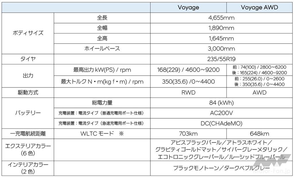 ●アイオニック5「ボヤージュ」主要諸元・仕様