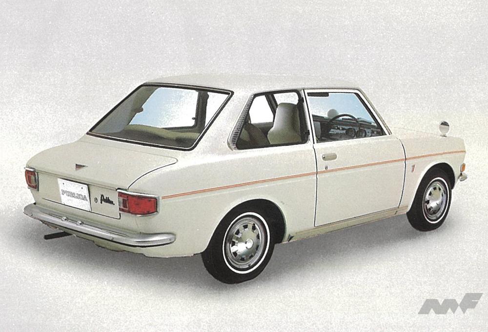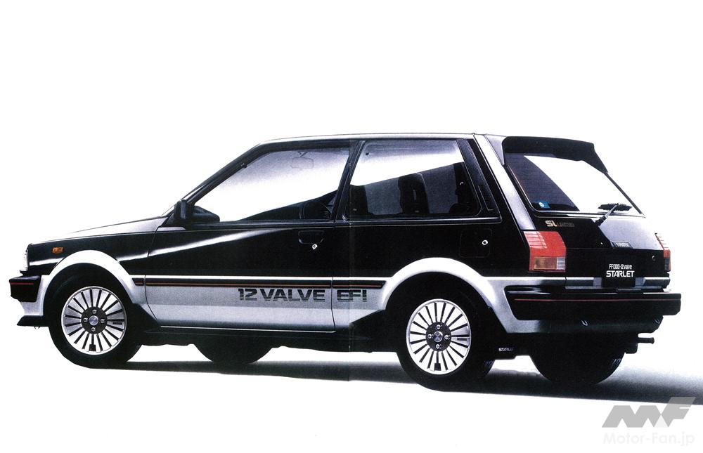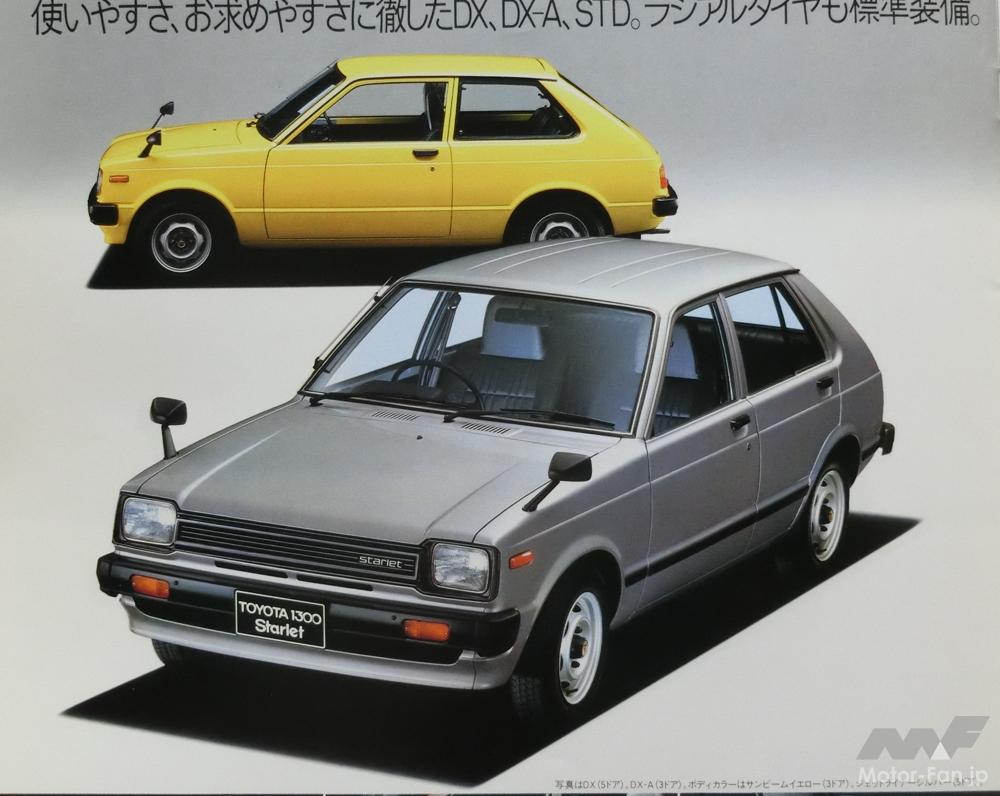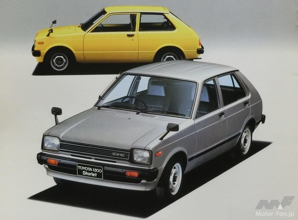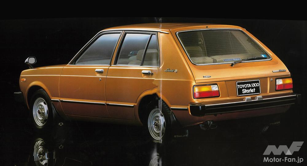 初代スターレットは1978(昭和53)年2月に発売。そのスターレットとて前身があり、もともとは1955(昭和30)年、当時の通商産業省が提唱した「国民車構想」を源流とする「パブリカ(UP10型・1961(昭和36)年6月)」が原点だ。