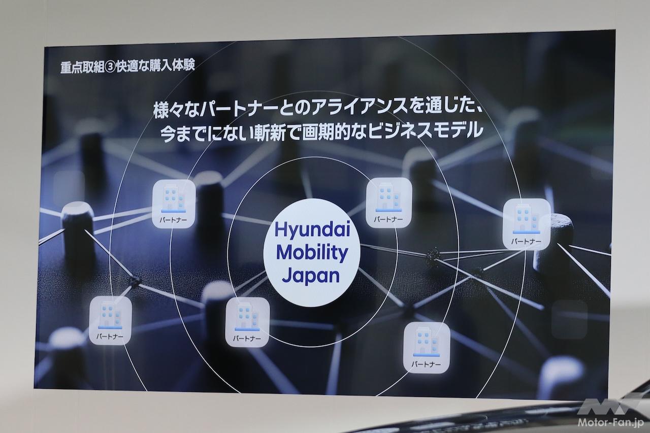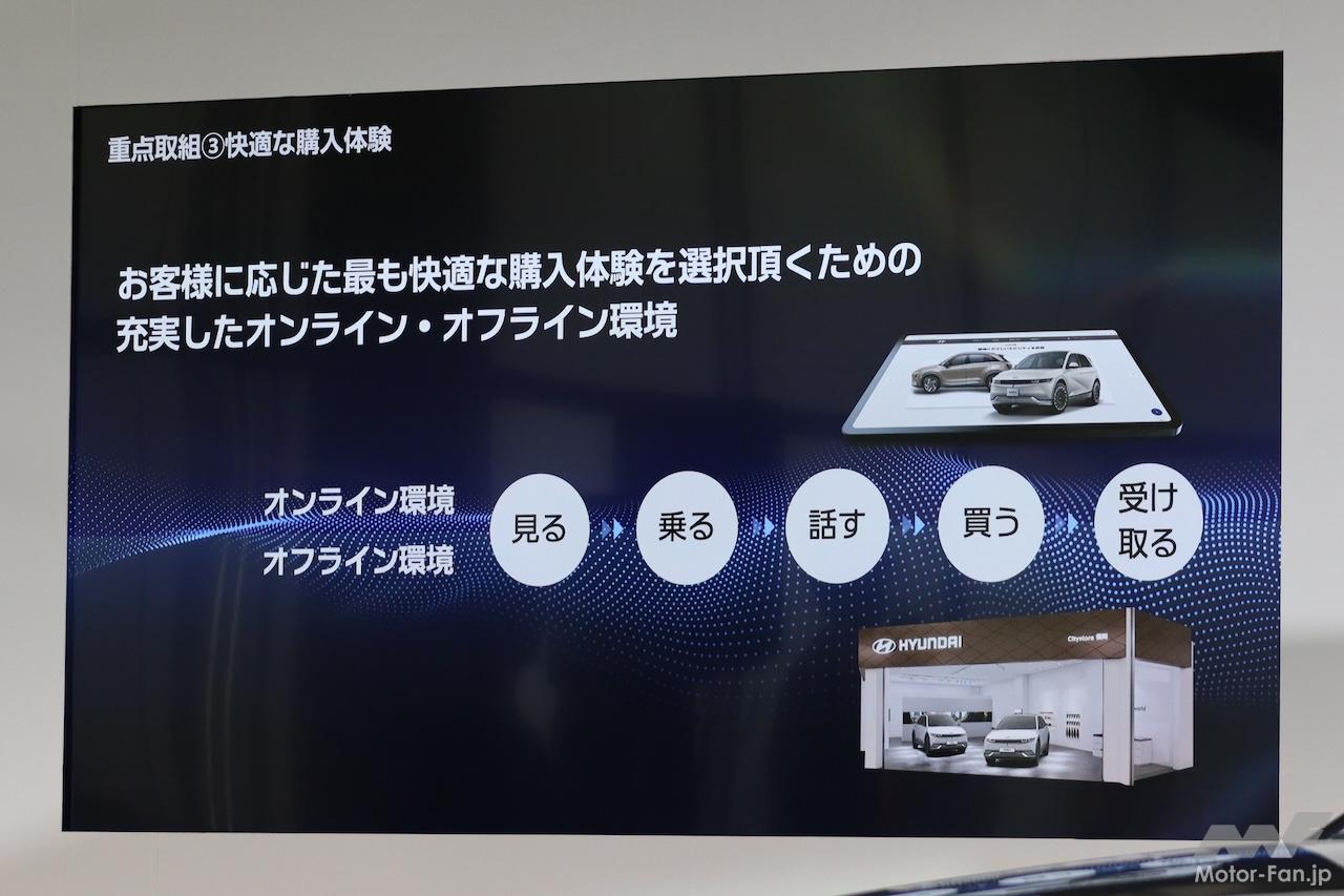 三つ目の約束として、「快適な購入体験」の提供が掲げられた。ヒョンデはディーラー網を構築しない販売スタイルだが、消費者のライフスタイルやニーズが多様化する中、オンラインだけでなくオフラインを組み合わせた購入体験の充実が重要視されている。実車を確認したい場合はカスタマーエクスペリエンスセンター横浜などに出向いてもらい、さらにオンラインでのコミュニケーションの機会も提供するなど、リアルとデジタルの両方を取り入れた購入体験を構築する。そのさらなる充実化のためにも、さまざまなアライアンスパートナーとの提携を検討しているとのことだ。