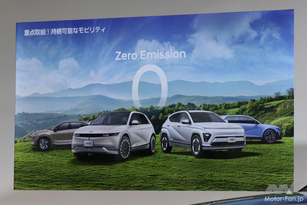まず掲げたのは「持続可能なモビリティ」の提供だ。気候変動への対策が重要視される中、自動車産業が担うべき責任を強く認識していると語った。ヒョンデは日本市場向けに、BEV(バッテリー式電気自動車)や水素燃料電池車といったゼロエミッションビークルのみを提供しているが、それは今後も継続されるとしている。