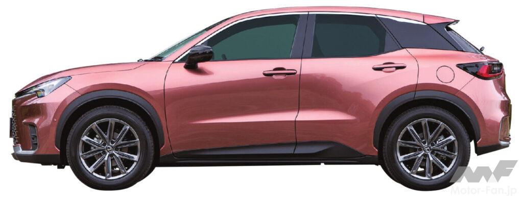 クラスで言うとBセグメント、事実で言うとトヨタ・ヤリスクロスと同じGA-Bプラットフォームを使う。ちなみにホイールベースはLBXの方が20㎜だけ長い2560㎜、ボディの外形寸法はヤリスクロスに対して全長は+10㎜の4190㎜、全幅は+60㎜の1825㎜、全高は45㎜減の1545㎜と、3サイズ的にはLBXの方が幅広く低いのが特徴だ。グッと張り出したリヤフェンダー部が印象的だが、トレッドもヤリスクロス比で、前後とも55㎜拡幅されている。
