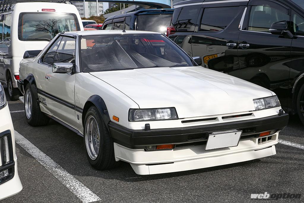 「昔はこういう鉄仮面がたくさん走ってたなぁ」と、懐かしい気持ちにさせてくれたチンスポ&オバフェン仕様のDR30。リヤウインドウ越しに確認できる置き型リヤスピーカー(カロッツェリア製)も旧車感満点だが、フロントウインドウにはドラレコが…。これも時代の流れか。