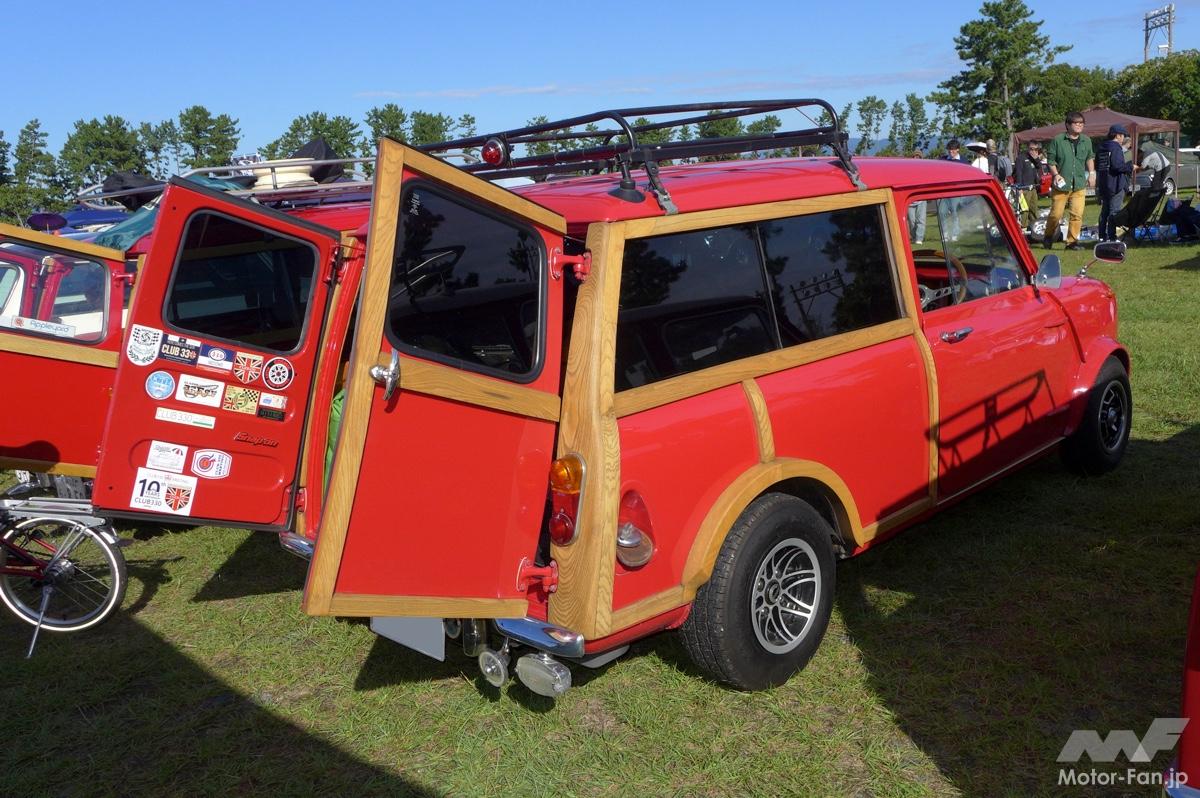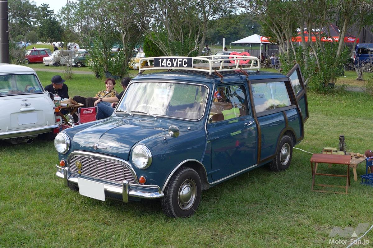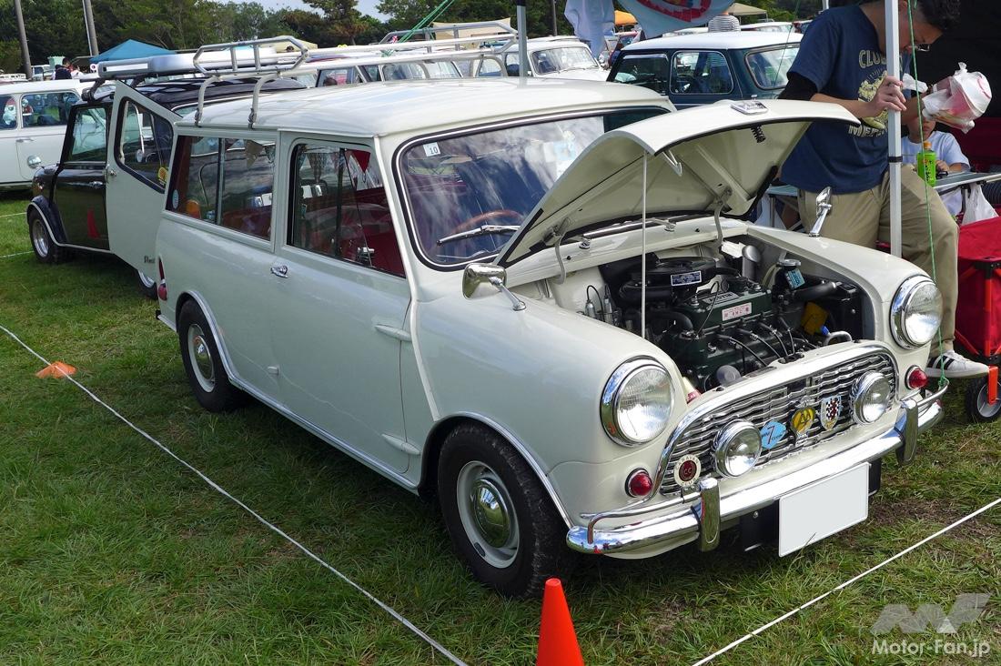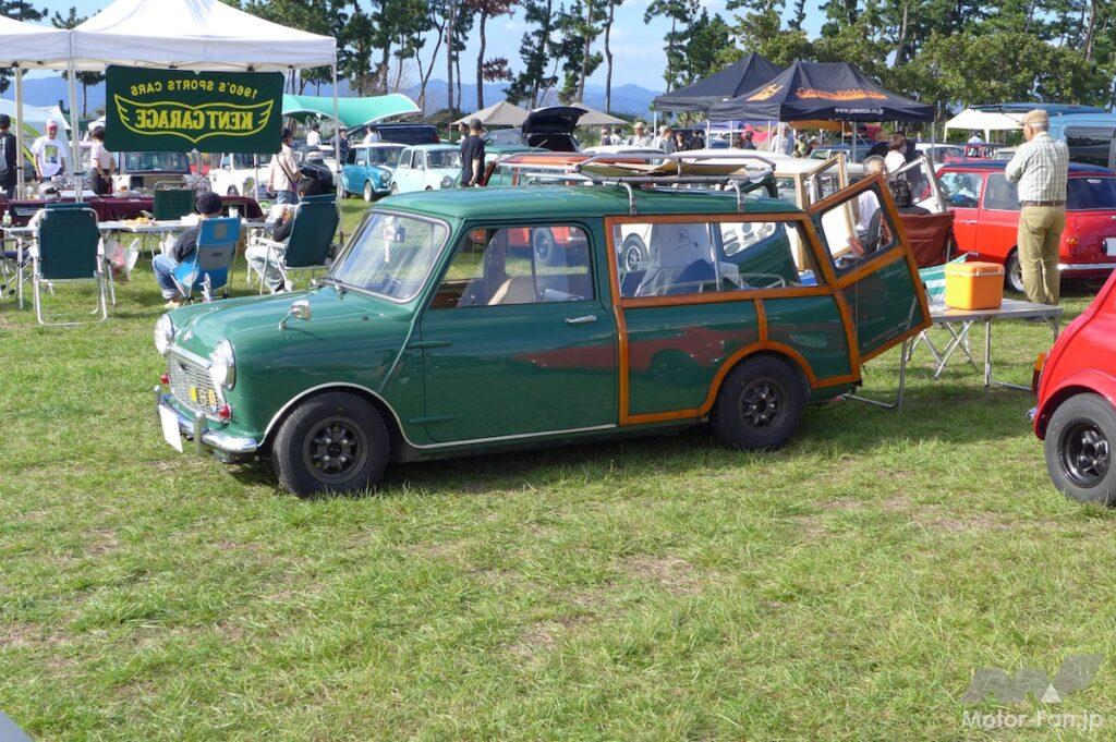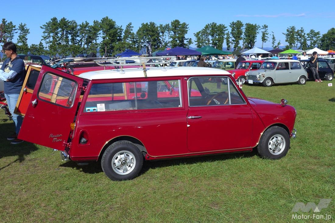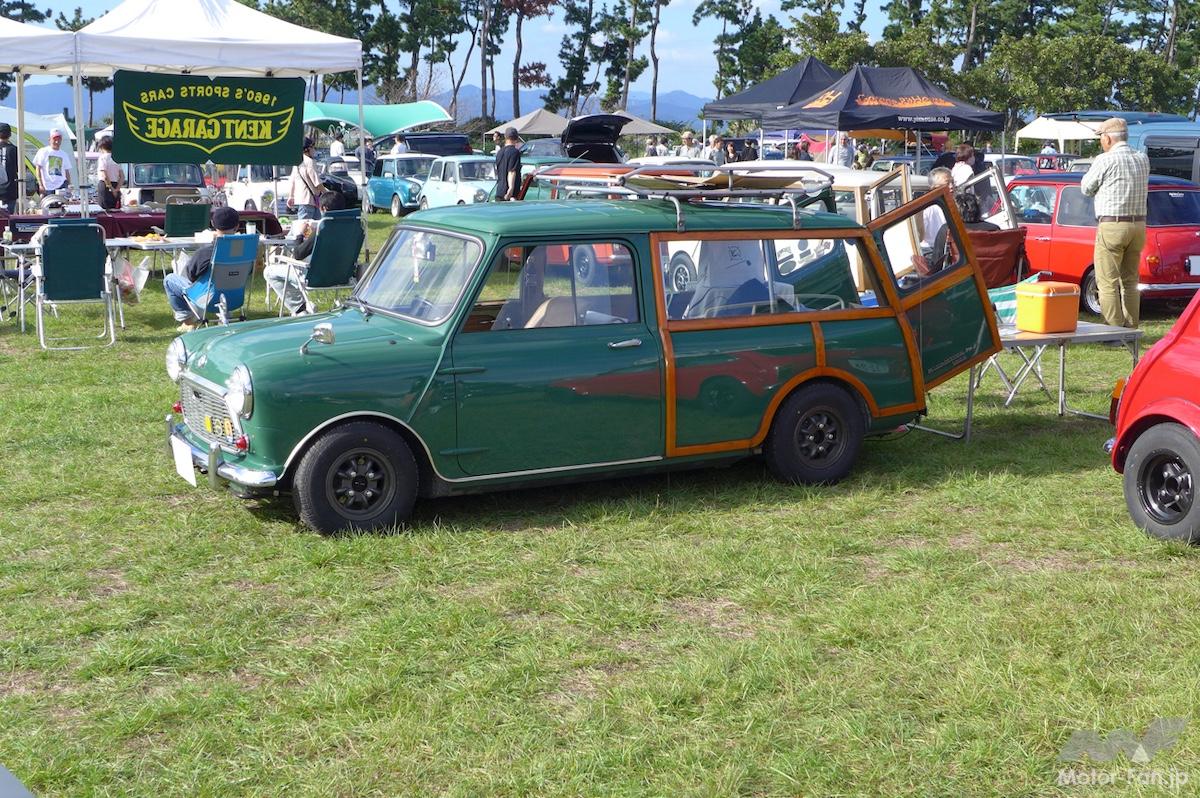 残存数の多さから輸入旧車の中では、日頃街中で目にする機会の多いクラシック・ミニだが、オースチン・ミニ・カントリーマン/モーリス・ミニ・トラベラーなどのエステートモデルはなかなかお目にかかることのない希少なモデルだ。だが、『ジャパンミニデイ in 浜名湖』ではそんなレアな車両が会場の至るところに展示されている。