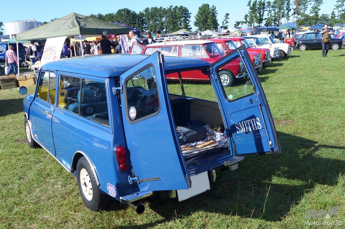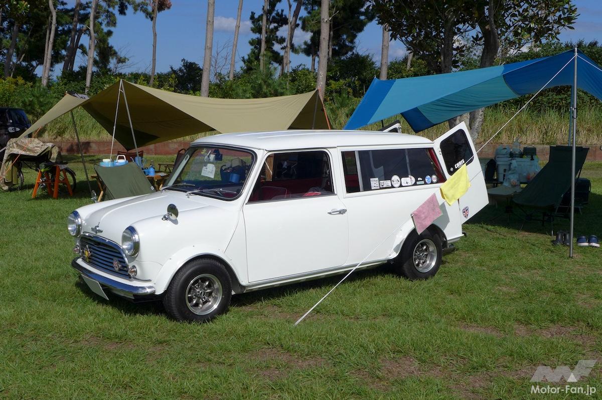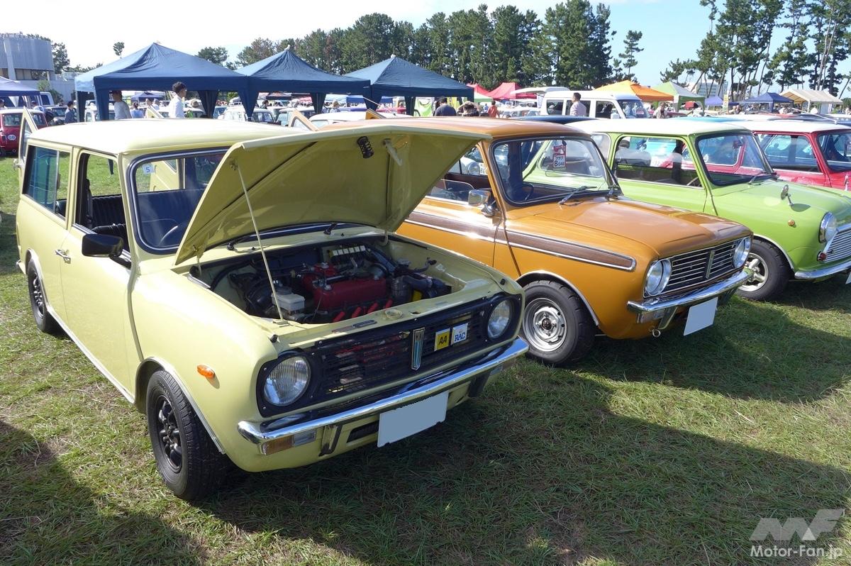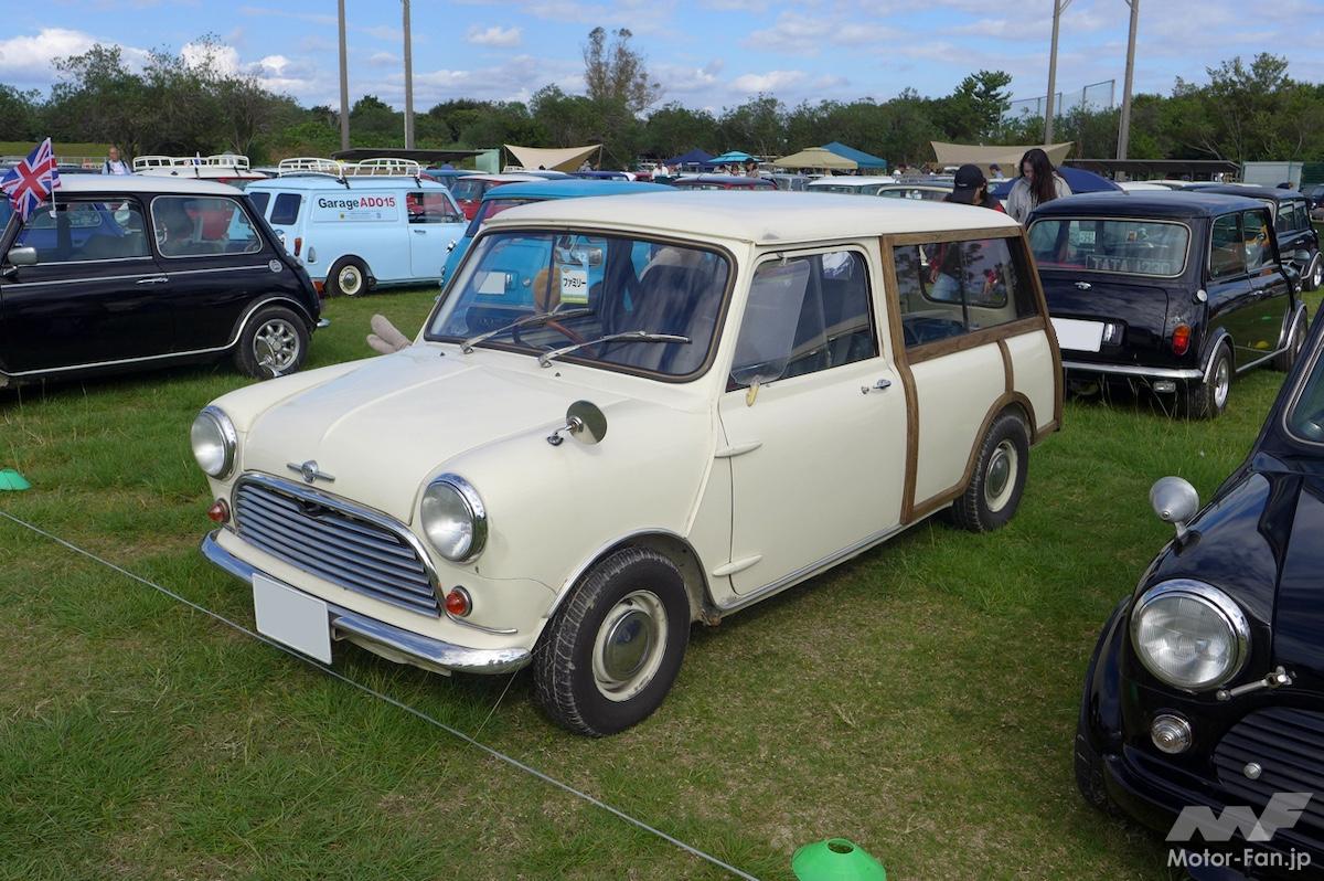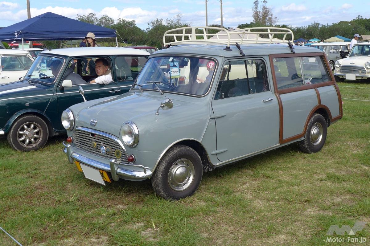 残存数の多さから輸入旧車の中では、日頃街中で目にする機会の多いクラシック・ミニだが、オースチン・ミニ・カントリーマン/モーリス・ミニ・トラベラーなどのエステートモデルはなかなかお目にかかることのない希少なモデルだ。だが、『ジャパンミニデイ in 浜名湖』ではそんなレアな車両が会場の至るところに展示されている。