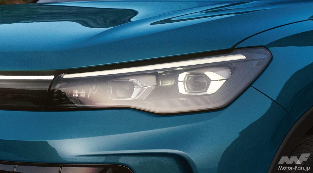 従来モデルより設定されていたLEDマトリックスヘッドライトは、フロントカメラで対向車や先行車を検知し、マトリックスモジュールに搭載されたLEDの点灯・消灯を個別に制御することで最適な配光を可能とした最新のヘッドライトシステム。新型ティグアンにはさらに進化した“IQ. LIGHT” HDを「エレガンス」と「Rライン」に標準装備。片側1万9200個の高精細なマルチピクセルLEDを搭載し、従来よりも細かい制御が可能になった効果で、夜間や暗い場所での走行がより快適・安全になる。