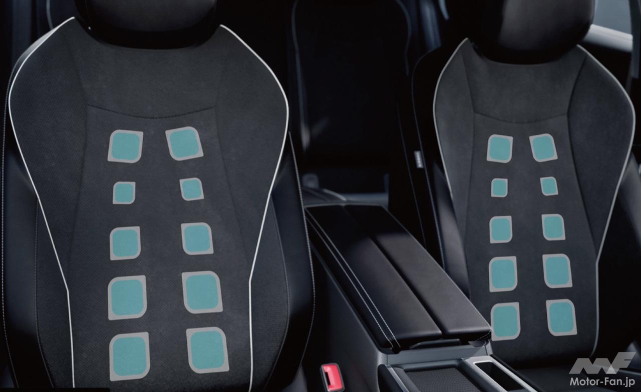 さらにオプションのレザーシートパッケージ装着時には、8種類のパターンから選択できる空気圧式リラクゼーション機能が運転席・助手席の両席に搭載される。またシートベンチレーション機能により、乗員とシートの間にこもった熱を逃し、快適性を維持するほか、外気温を検知してシートヒーター・ベンチレーションを自動的に作動するよう設定することも可能だ。