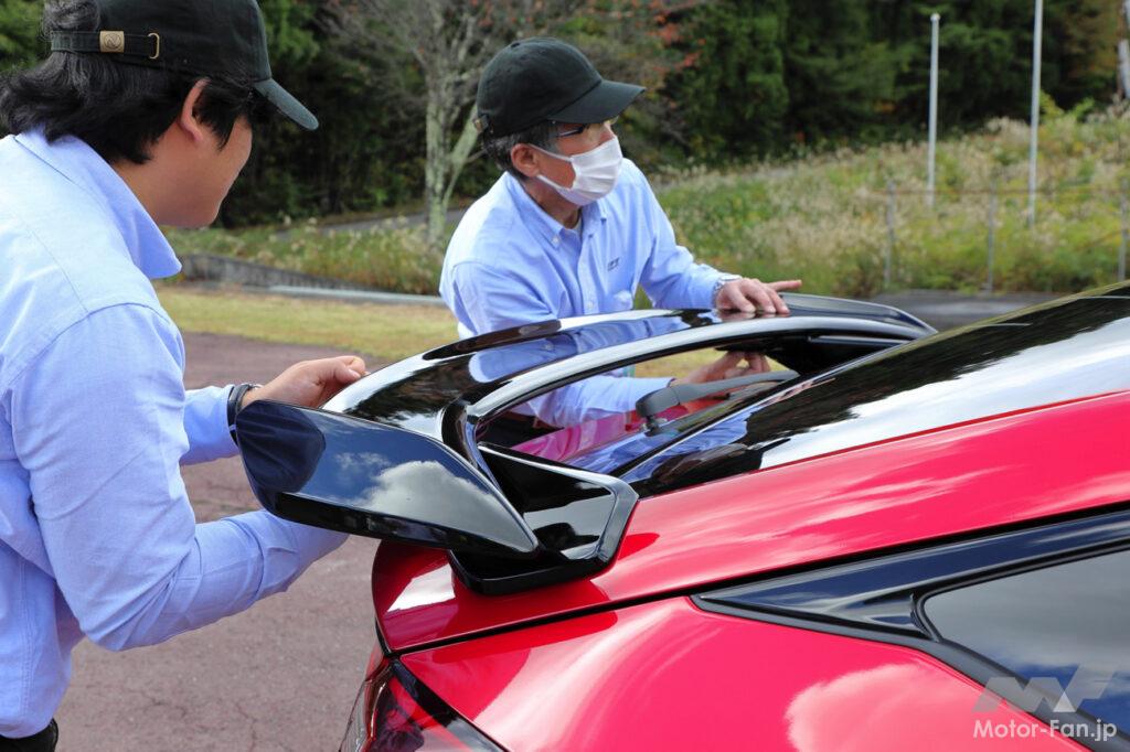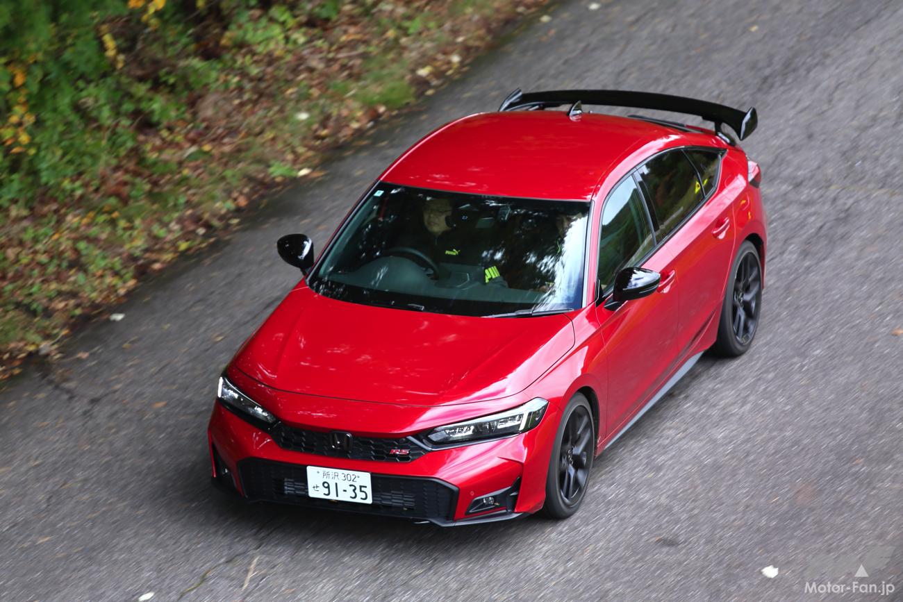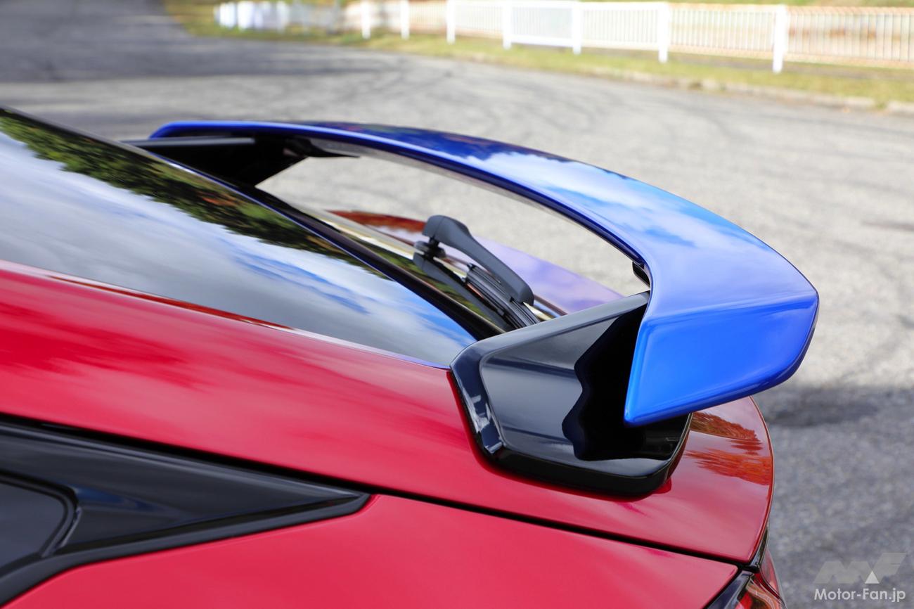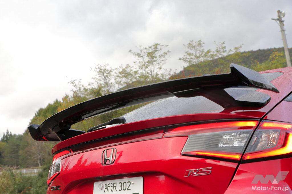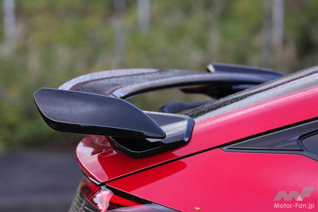 そのスポイラーが生む具体的な機能性については、イメチェン効果も高いタイプR譲りのデザインとなる翼端板は、Aピラーの角度と緻密に合わせ込んで位置決めされており、直進安定性を高めるという。さらに車両側面の風を受け流すことで、旋回時の安定性にも貢献する。