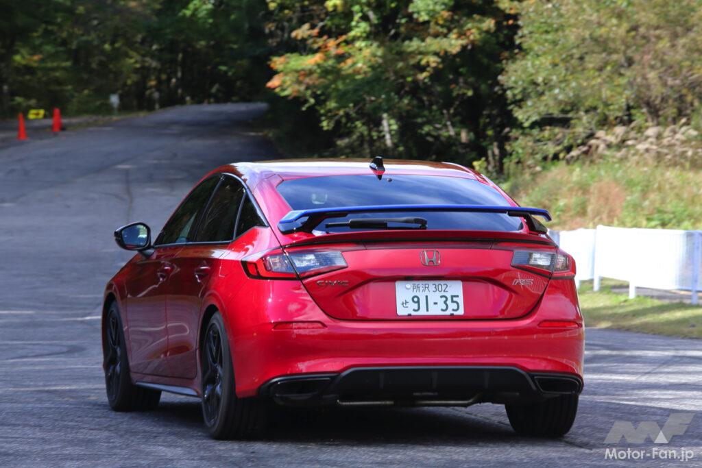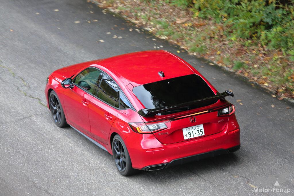 もし装着を検討しているオーナーがいるならば、装着直後は本当に気を付けて運転してほしい。劇的に走りが変わり、必要以上に攻めすぎてしまう危険すらあるからだ。ドライバーにも慣らし運転を求めるリヤスポイラーなんて初体験である。これはドレスアップパーツでなく、シビック本来の戦闘力を引き出すボディチューニングパーツであると認識してほしい。もちろん、CVT車やハイブリッド「e:HEV」にも対応し、前期型の標準車の全仕様にも装着可能だ。個人的には、よりコーナリングマシンに仕上げられているe:HEVモデルの装着車に乗ってみたいと思った。