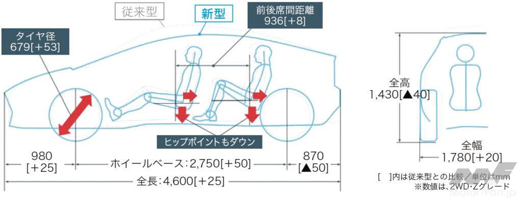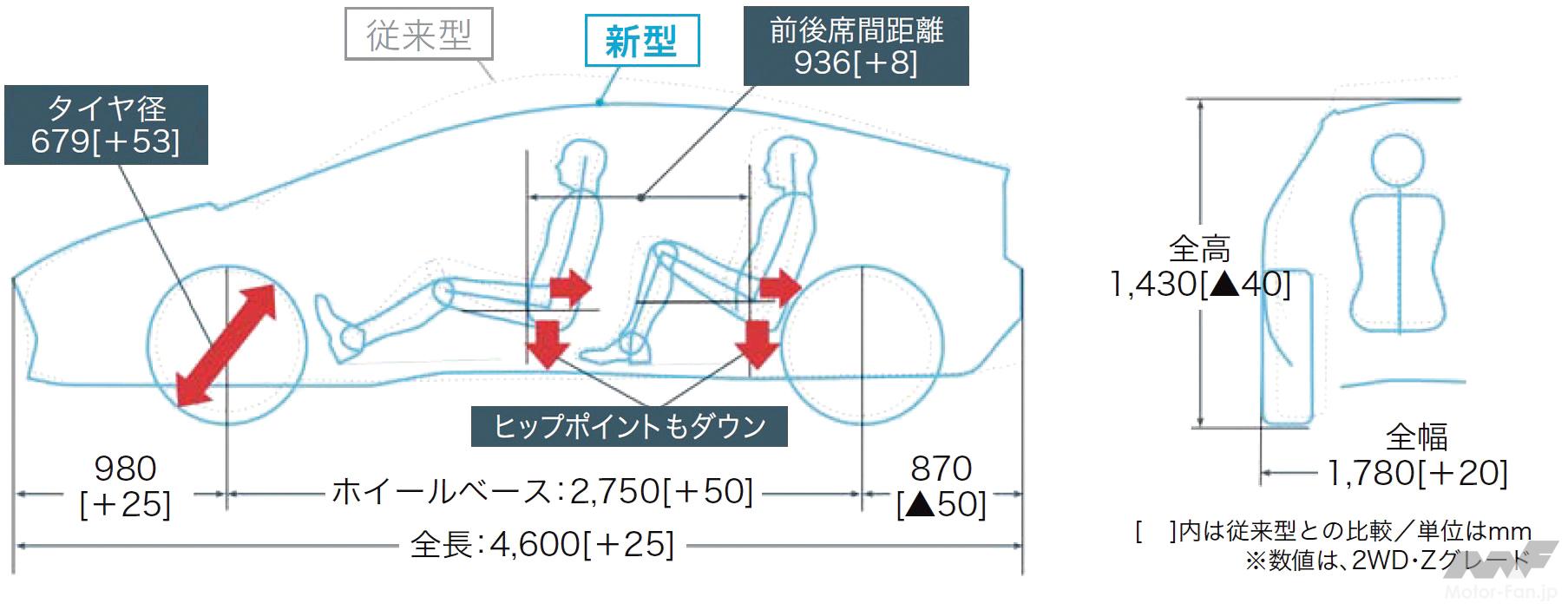 この点については、従来からのプリウスと同様ではあるが、これまでよりも重点を置くかたちになるということ。そしてプリウス史上初となる2種類の排気量がラインアップが用意されたのはこのためだ。ちなみに2.0LにはM20A-FXS型、1.8Lに2ZR-FXE型エンジンを採用。組み合わされる第五世代のハイブリッドトランスアクスルは、すでにノア/ヴォクシー、そしてマイナーチェンジ後のカローラに採用されている。M20A-FXS型を用いる第五世代ハイブリッドトランスアクスルの組み合わせは国内初出だが、後者の1.8L版については、少なくともパワートレーンのハードウェア的にはカローラに搭載されていたものがほぼそのままとなるようだ。