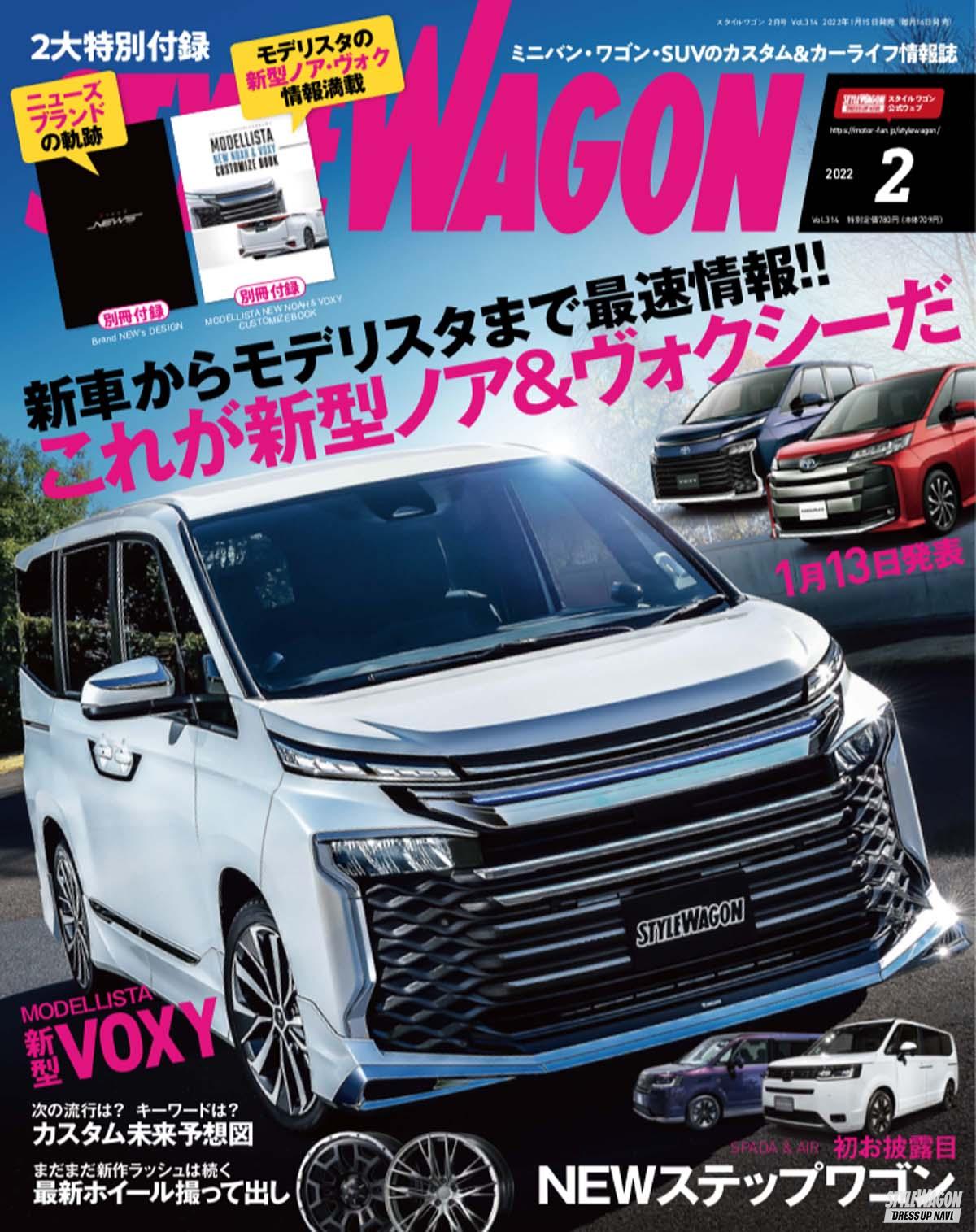 今号は、カスタム好きなら必見のモデリスタ・新型ノア&ヴォクシーに迫った内容とカスタムの歴史がわかるニューズの小冊子が付属。今号でしか入手できない付録だから、気になる方は絶対に今月のスタイルワゴン2月号をお見逃しなく!