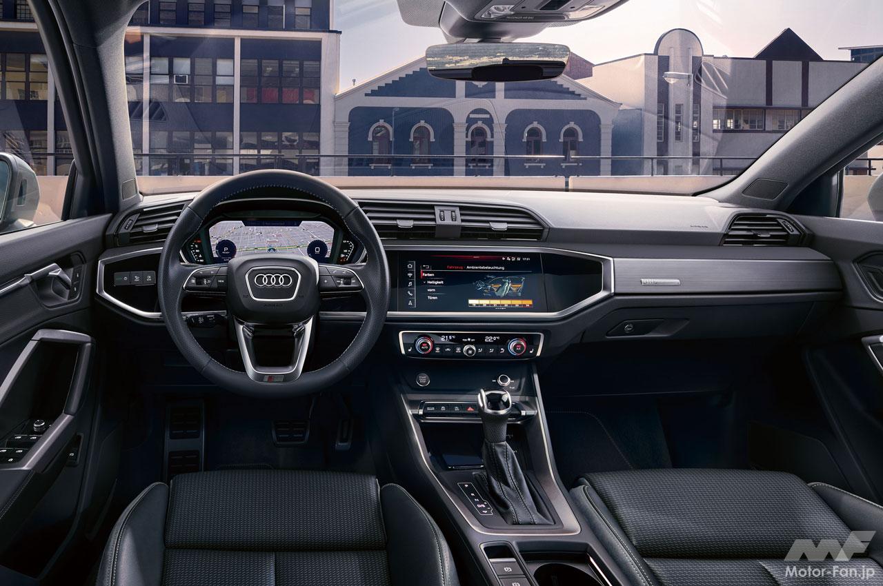 インテリアにも、オクタゴンのシングルフレームグリルをモチーフとしたデザインがインストルメントパネルに配されている。今回のアップデートでは、アウディの上位モデルから受け継がれた10.25インチのフル液晶ディスプレイ式デジタルインストルメントクラスターや、タッチスクリーンを備えた8.8インチのMMIなどにより、先進的なデジタル体験を提供する。