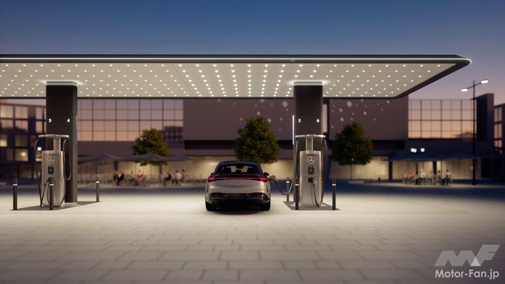 メルセデス・ベンツは、北米の地域ごとに最大350kWの充電が可能なハイパワー充電器(HPC)を4〜12基、最終的には30基まで設置する予定としている。インテリジェントな充電負荷管理により、各車両は最大限の充電能力を発揮し、待ち時間を最小限に抑えることができる。また、最適化されたステーションレイアウトにより車両の周りに十分なスペースを確保し、両側から自由に充電できるようになる。また、可能な限り充電ポイントに屋根を設置し、天候に左右されない安心な充電環境が提供される。