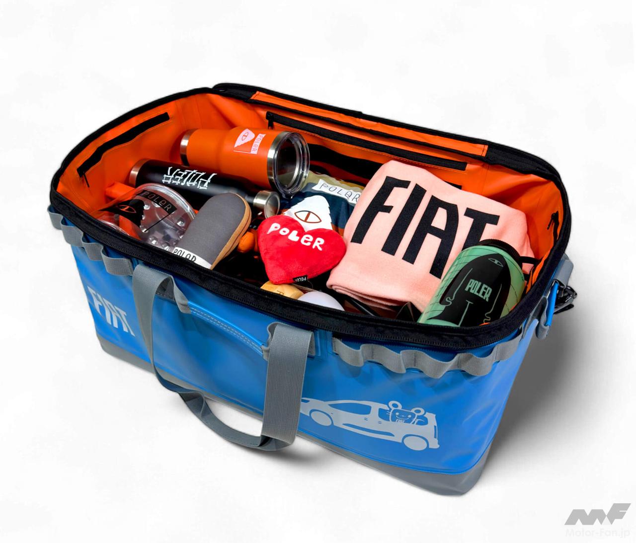ローンチエディションは5人乗りのドブロをベースに、小物収納付きの固定式ガラスルーフ、Magic Top(マジック トップ)を装備。さらに、アメリカのオレゴン州ポートランド発の新感覚アウトドアブランド、POLeR(ポーラー)とコラボレートし、FIATロゴや公式キャラクター、TOPO FIAT(トポ フィアット)などがデザインされたオリジナルアイテム、ソフトマルチコンテナとマルチユーティリティチェアをプレゼント!
