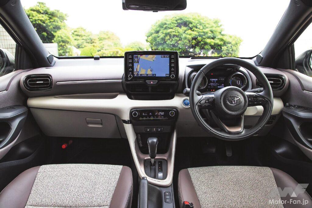 そしてヤリス最大のセールスポイントと言っていい燃費性能はHVで最良36.0㎞/ℓ。ライバルを圧倒する商品力の持ち主でもある。さて、迫力を増した顔つきをもつ最新のヤリスHVの最上級グレード、WLTCモード燃費35.4㎞/ℓとなる「Z」のFF車を走らせれば、まずは前席の掛け心地の良さが好印象。トヨタの上級車と同様、背中の優しい包まれ感、座面のソフトなクッション性がもたらす心地良いサポート感は、同クラスの国産車にない魅力、強みと言っていい。