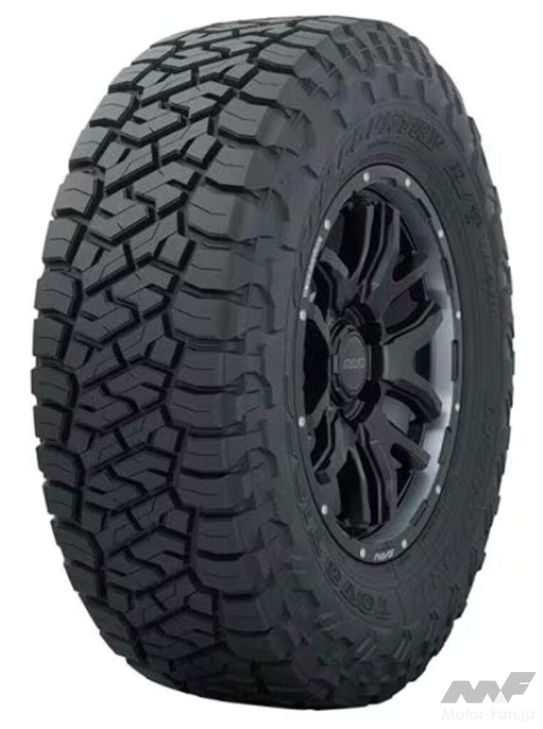 このたび発表された「オープンカントリーR/Tトレイル」は、オフロード性能とタフネスさを兼ね備えたラギットテレーンタイヤ。サイドデザインではピックアップトラック/SUVの足もとを挑戦的な印象で演出するとともに、磨き上げたパターン技術による高いトラクション性能、ノイズ抑制による快適性を両立させ、環境に配慮したサステナブル素材(※)も使用している。今年11月、メキシコで開催された過酷なオフロードレース「バハ1000」では、同製品を装着したレクサスLXで参戦した「TEAM JAOS」がStock Full Size部門でクラス優勝を達成している。