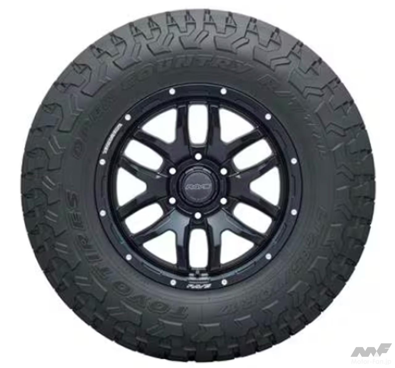 このたび発表された「オープンカントリーR/Tトレイル」は、オフロード性能とタフネスさを兼ね備えたラギットテレーンタイヤ。サイドデザインではピックアップトラック/SUVの足もとを挑戦的な印象で演出するとともに、磨き上げたパターン技術による高いトラクション性能、ノイズ抑制による快適性を両立させ、環境に配慮したサステナブル素材(※)も使用している。今年11月、メキシコで開催された過酷なオフロードレース「バハ1000」では、同製品を装着したレクサスLXで参戦した「TEAM JAOS」がStock Full Size部門でクラス優勝を達成している。