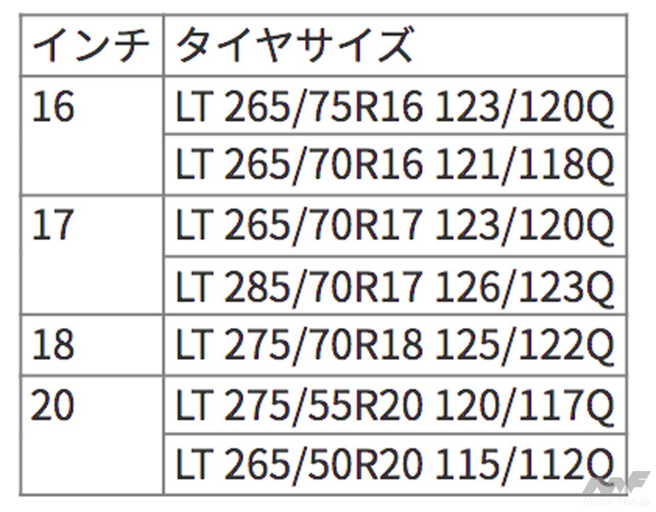 「オープンカントリーR/Tトレイル」サイズラインナップ