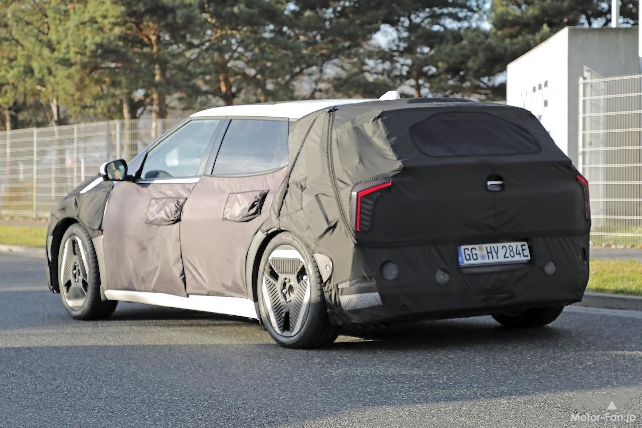 今回捉えたプロトタイプは、カモフラージュの下に量産型ヘッドライトを初めて装備しており、コンセプト同様に縦基調のスリムなLEDデイタイムランニングライトを持つ。しかし、後部のLEDテールライトは、コンセプトのデザインとは一線を画す4本のLEDスリットが配置されている。