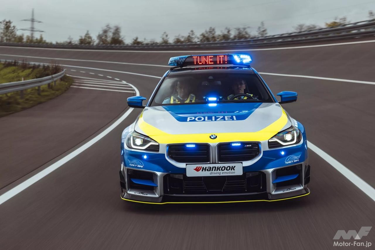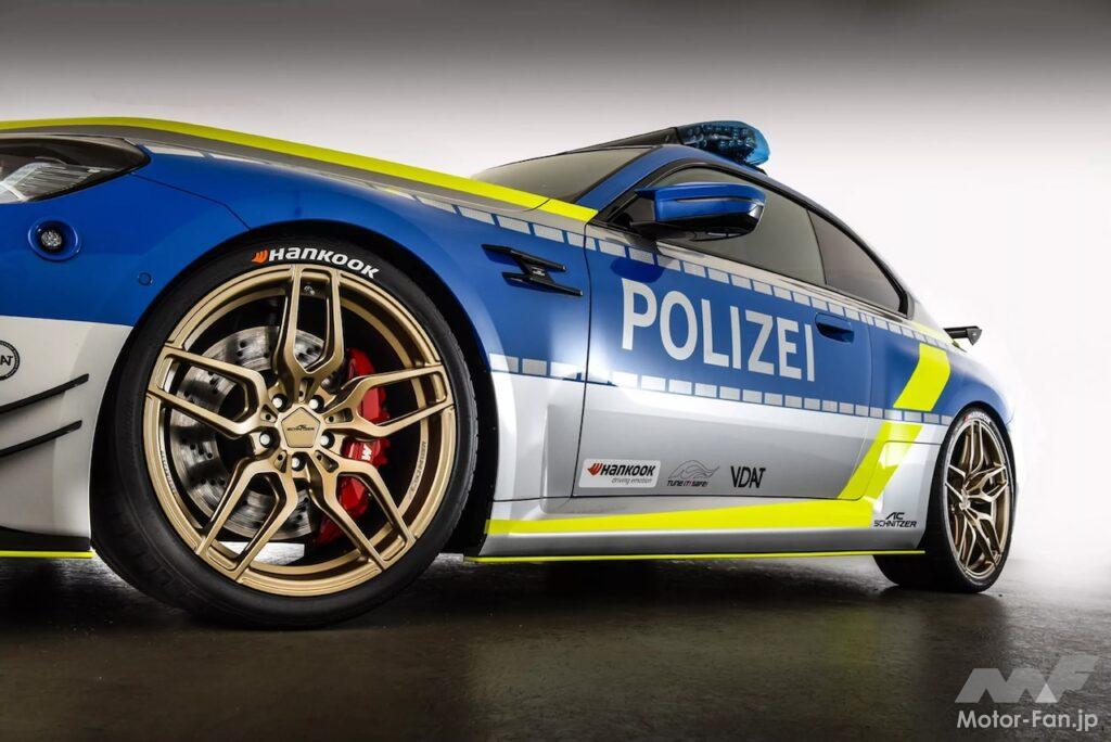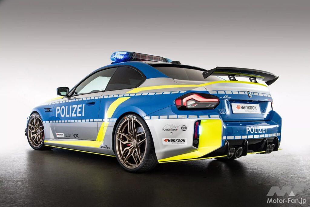 ACシュニッツアーによって改造されたM2パトカーは、シルバー、ブルー、イエローのカラーリングに大胆に配された“Polizei(ポリツァイ=警察)”の文字、ルーフマウントされたサイレン、存在感を高める追加のLEDライトが際立っている。そのほか注目を集める特徴は、フロントスプリッター、カナード、サイドスカート、ルーフスポイラー、ガーニーフラップが付いた目立つリヤウィングを含むアグレッシブなカーボンファイバーボディキットだろう。