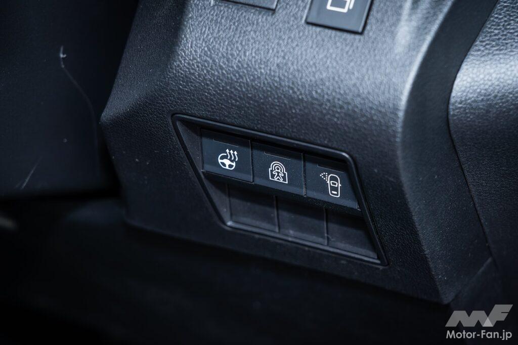 ステアリングも新型は上下が直線的になった新タイプに変更された。これまではステアリングコラムに設けられてたクルーズコントロール系のスイッチがステアリング左側に移設されたことで、より直感的な操作が可能となったのも朗報だ。また、ステアリングホイールヒーターも新装備された。