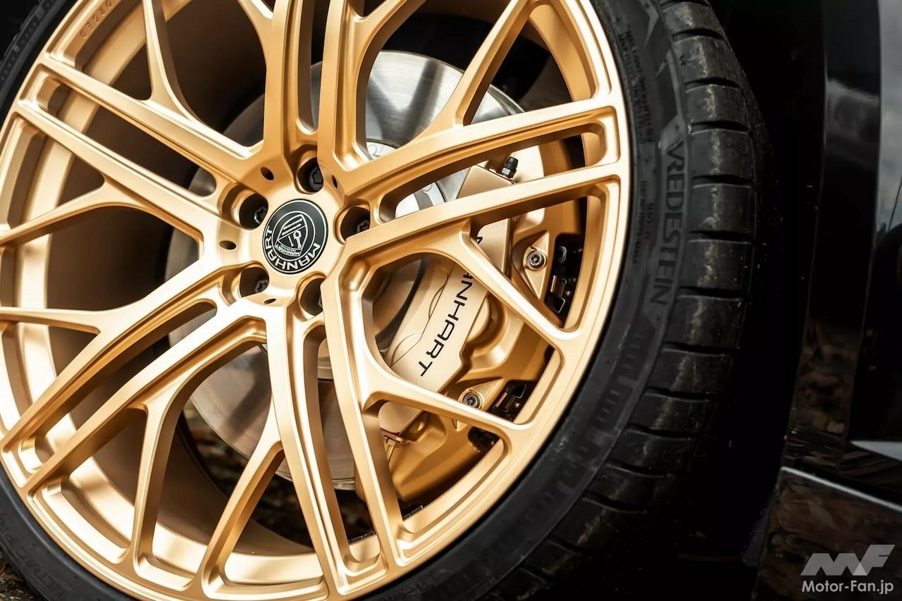 エクステリアにも多くのアップグレードが施されている。フロントスプリッターやエアインテークの周りなどは、他のマンハートプロジェクトを彷彿とさせる、黒と金の仕上げが施されている。巨大な24インチホイールも装着されており、フロント295/30、リア355/25のタイヤを履いている。これらのリアタイヤはブガッティシロンと同じ幅で、すべてのパワーを地面に伝えるのに十分だろう。