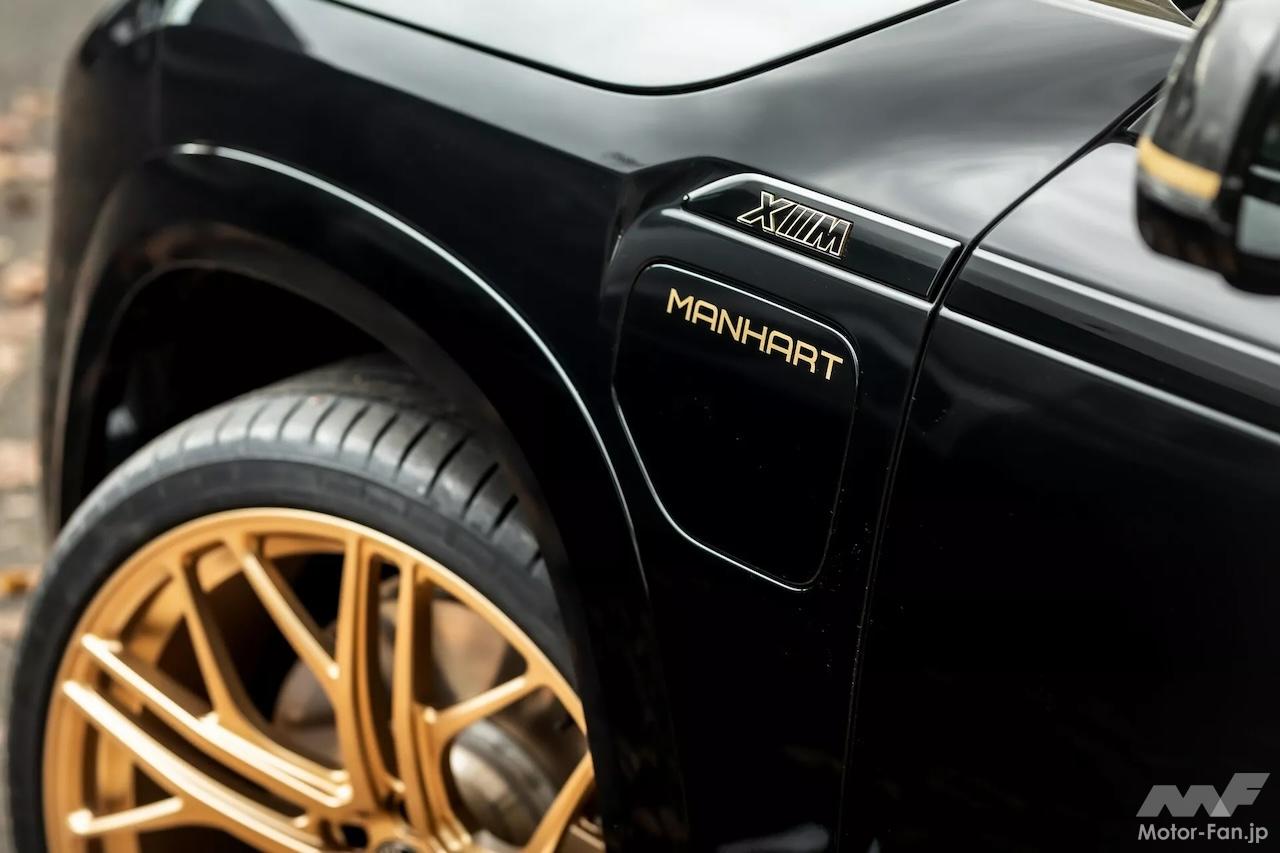 マンハートは、視覚的スパイスとパワーを増加させることにより、XMを魅力的に改造した。心臓部には、4.4リットルV8ツインターボエンジンを搭載、最高出力は888ps、最大トルク1,200Nmへと向上、最高グレードのレーベル・レッドと比較しても出力148psと200Nmの増加となっている。