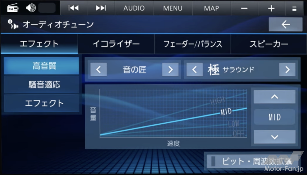 ストラーダのもうひとつの特徴が、『音の匠』を搭載することだ。設定には3つのモードがある。