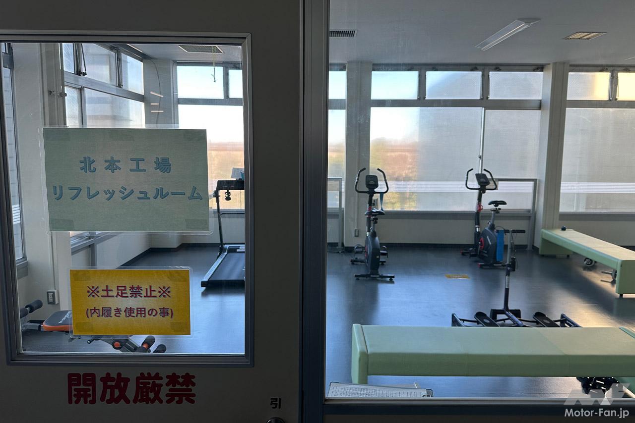 食堂の近くには24時間営業(後述するが、昼夜2直勤務体制だ)のコンビニがあり(外部の人間にとって魅力的なオリジナルグッズが目に付いた)、リフレッシュルームと名づけたトレーニングルームがある。このように、従業員の満足度を上げる取り組みが進んでいる。