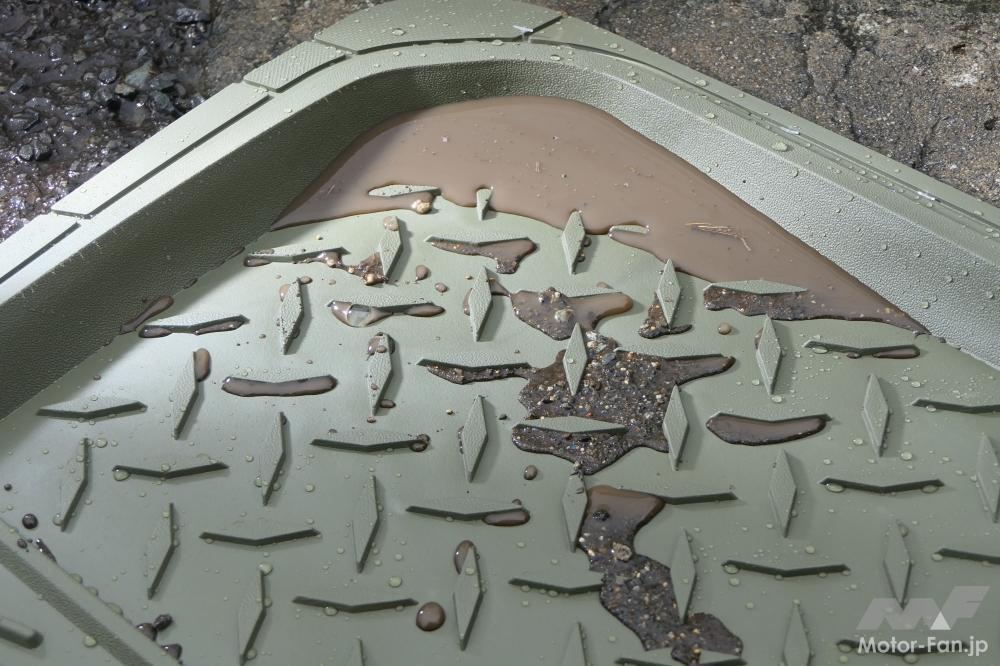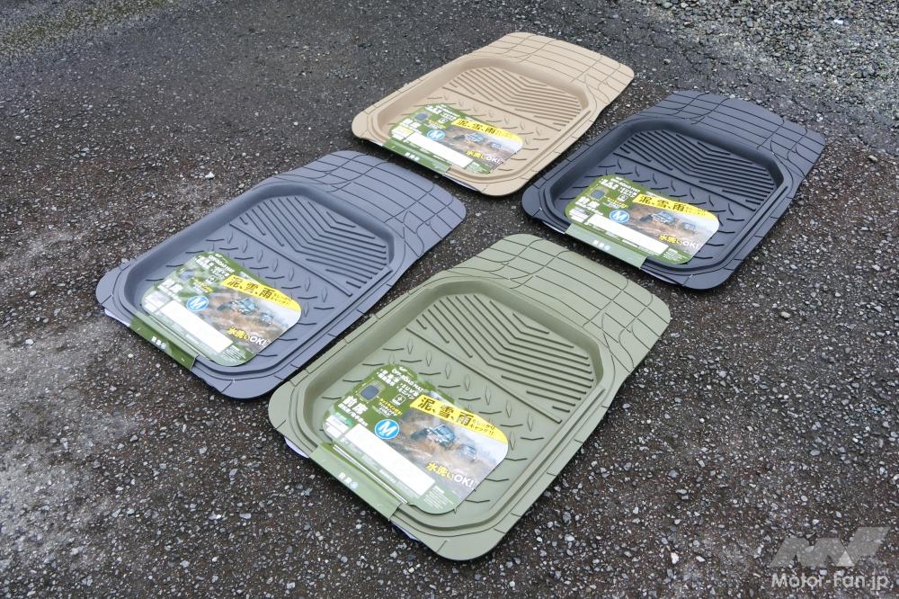 カラーはブラックとダークグレー、オリーブ、ベージュの4色が設定されており、内装色に合わせてコーディネイトできる。トレンド感のあるオリーブやベージュを選べばアウトドアテイストをより高めることも可能。足元とはいえ面積が大きいフロアマットだけに、そのイメチェン効果は意外に侮れない。