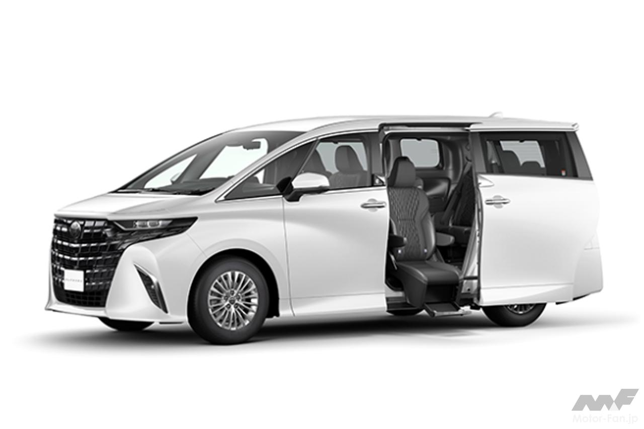 アルファードのウェルキャブ“サイドリフトアップチルトシート装着車(7人乗り)”も、ベース車と同様の改良を実施。新たにガソリン車のXグレードにも追加設定された。