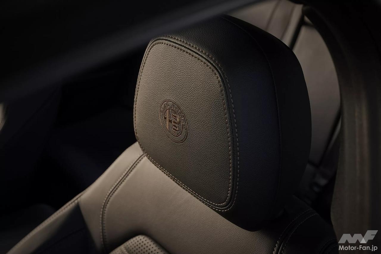 また、ジュリアとステルヴィオのインテンサには、ミラーキャップにイタリア国旗、キャビン内にアルミニウムを多用、赤いセンターアームレスト、それにマッチしたステッチを追加している。