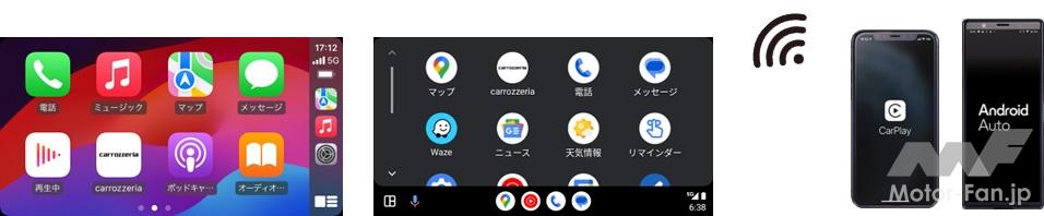 スマホとディスプレイオーディオを接続する場合、一般的にはUSBケーブルを使用するが、このモデルでは業界で初めてワイヤレス接続(Wi-Fi/Bluetooth)を実現。クルマに乗るたびにいちいちケーブル接続をしなくてもスマホが車内にさえあれば自動接続が行なわれる。