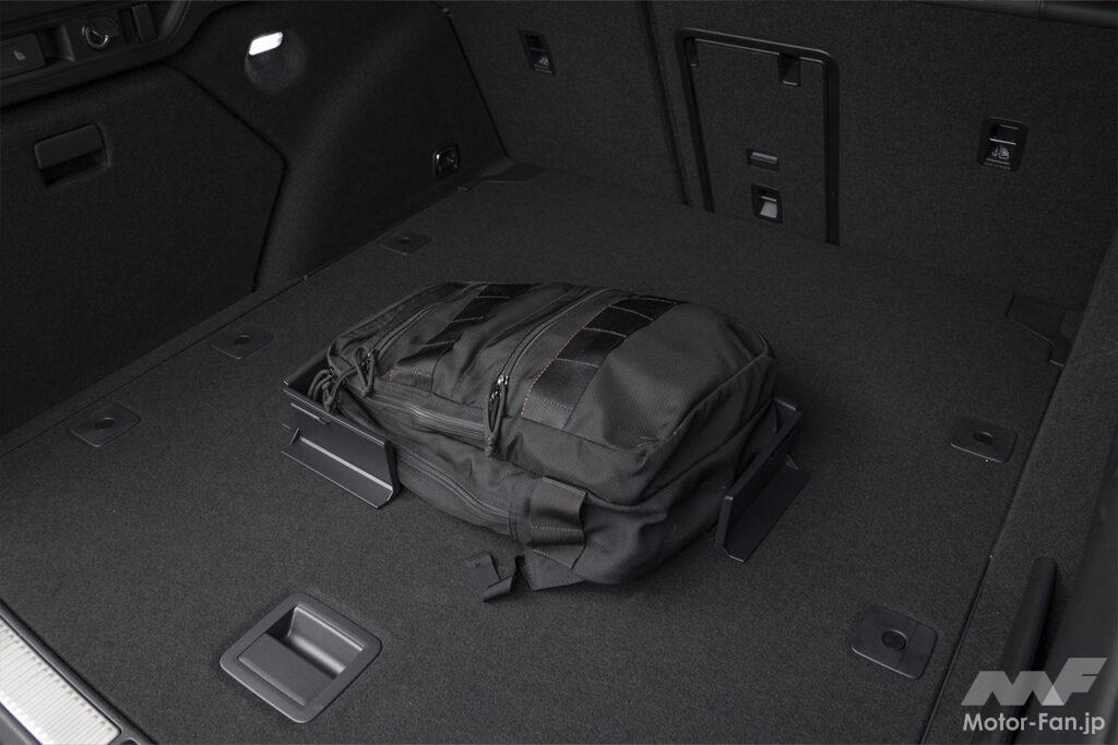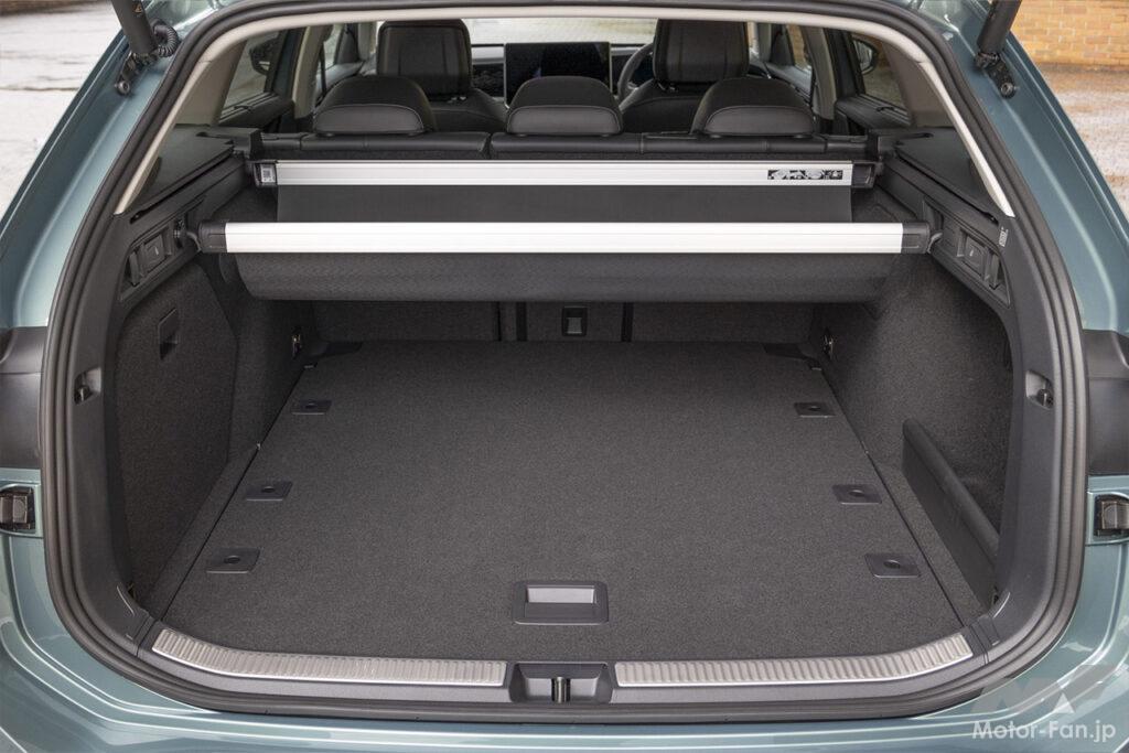 荷室も広い。通常時の容量は690L、後席を倒すと1920Lに拡大し、この数値は先代比+140Lだそう。付属の金属製バーを使ってハンモックのような状態を作り出し、そこに小物を置いたり、フロアに固定して仕切りに使ったり、付属の樹脂部品をフロアに差し込んで荷物が走行中に暴れないようにすることができる。多彩な使い方ができるのも新型パサートの特徴だ。AC100Vの電源ソケットも設置されている。テールゲートの開閉は当然、電動だ。