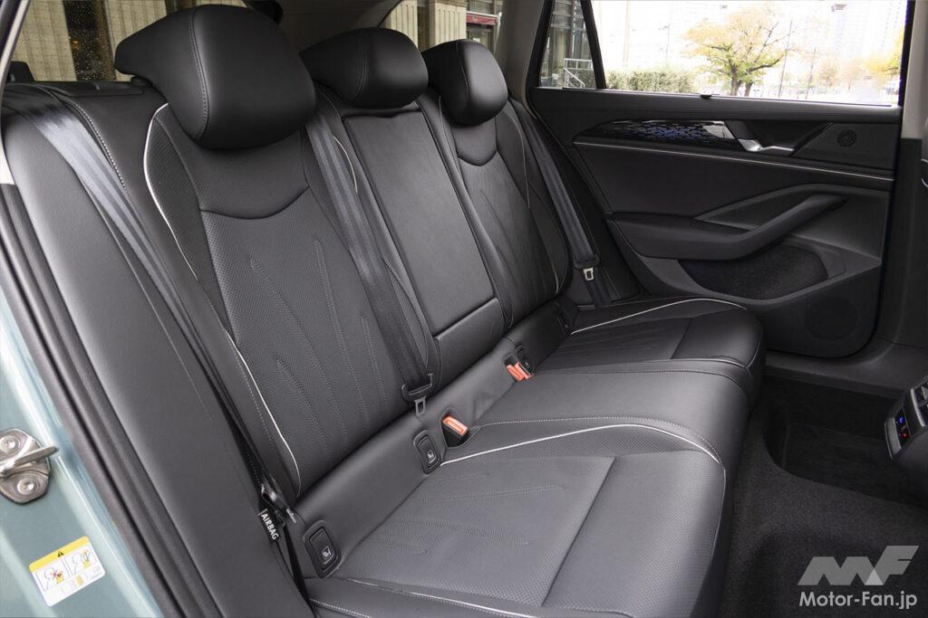 新型は大きくなった。全長×全幅×全高は4915mm×1850mm×1500mmで、先代より130mm長くなっている。全幅と全高に変わりはない。ホイールベースは先代比+50mmの2840mm。ホイールベースの拡大分は後席の居住性向上にあてられ、全長の拡大分は荷室の拡大にあてられている。おかげで、もともと広かった後席はさらに広くなった。身長184cmの筆者が運転席でドラポジをとった状態で後席に座ってみると、足元にはこぶしが4つは入りそうなくらいスペースが残る。足が組めそうだ(体が硬いので組めない)。