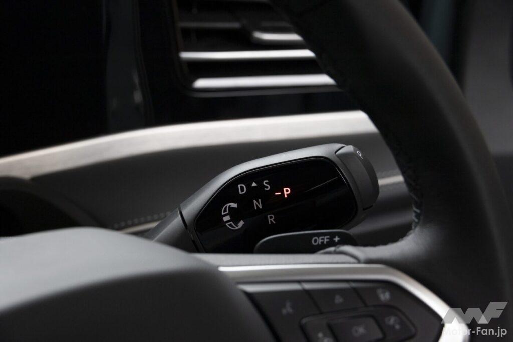前世代のVW車を知っていると、操作系が変わっていることにとまどうだろう。エンジンのスタート/ストップボタンはセンターコンソールに残っているが、シフトセレクターは見あたらない。どこにあるかといえば、ステアリングホイール右側の裏にあるレバーだ。前にひねるとD、手前にひねるとR、先端のスイッチを押すとPレンジに入る。シフトセレクターをセンターコンソールから追い出したのは、収納など他の用途に使いたかったということだろうか(操作系はティグアンも同じ)。