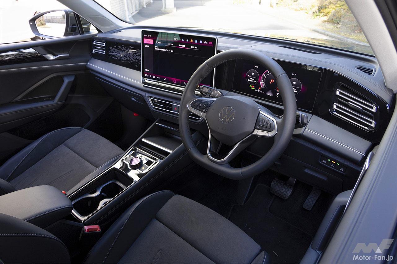 そのパワートレーンは2種類。エンジンはディーゼルとガソリンで、どちらも7速DSG(DCT)との組み合わせ。ディーゼルは4MOTION(4WD)となり、ガソリンは2WD(FF)だ。両エンジンともにアップデートされており、ディーゼルは2L TDIでツインドージングシステムを採用した最新世代。NOxを浄化する尿素水を排気系の上流と下流の2ヵ所で噴射するシステムを備えている。1ヵ所で噴射する従来のシステムに比べてNOxの浄化性能が高まるため、NOx後処理の都合で過渡のトルクを絞る必要がなくレスポンスに優れるのが特徴。残念ながら2024年12月のメディア向け試乗会には間に合っておらず、そのあたりの確認は2025年に持ち越しとなった。