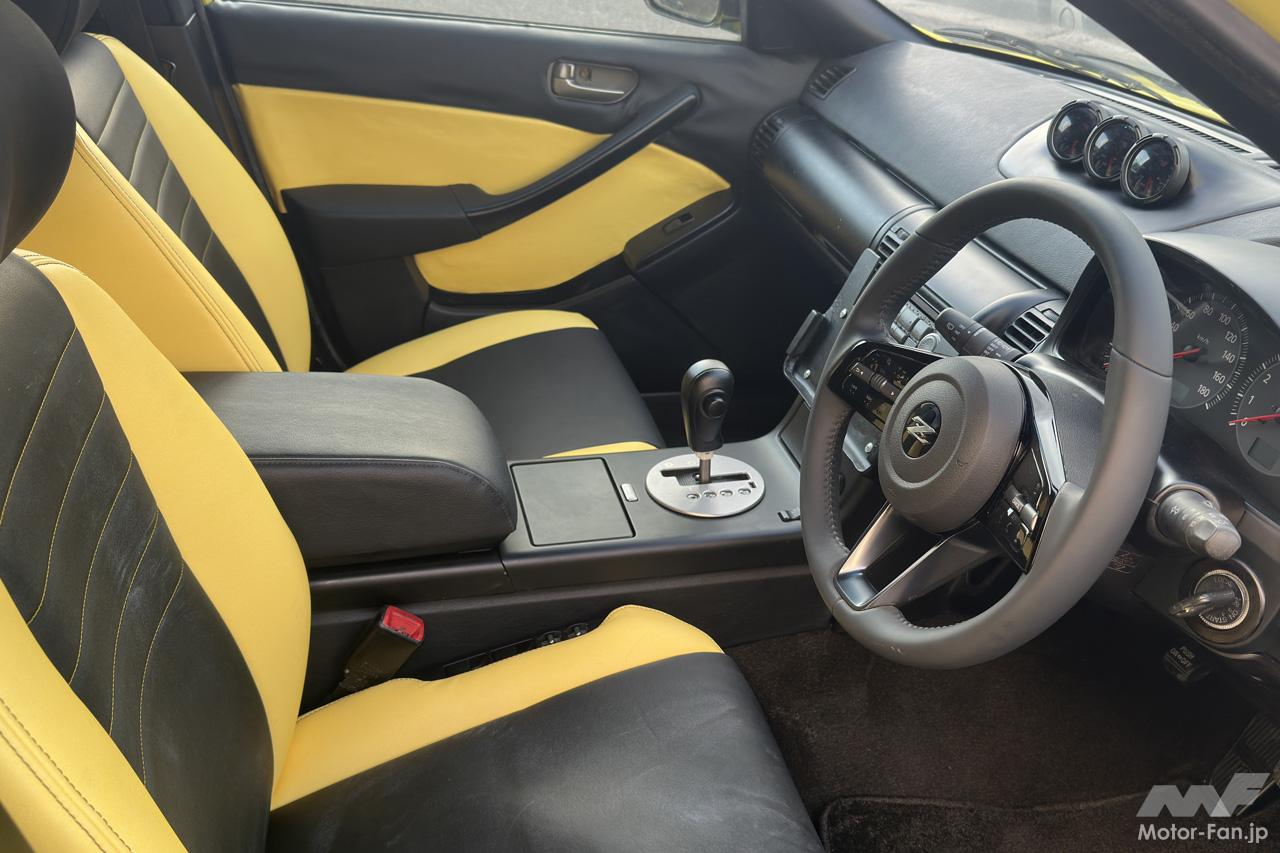 このコンセプトを具現化するために、ケンメリの部品やデザインをそのまま流用するだけでなく、ケンメリらしさを残しながらも今の時代に合ったスタイルを探求。ボディカラーは、学生が考えたオリジナルカラーの「トモアキブルー」だ。ケンメリのブライトブルーメタリックをベースに、新たにパールを加え、懐かしさの中にも新しさが表現されている。