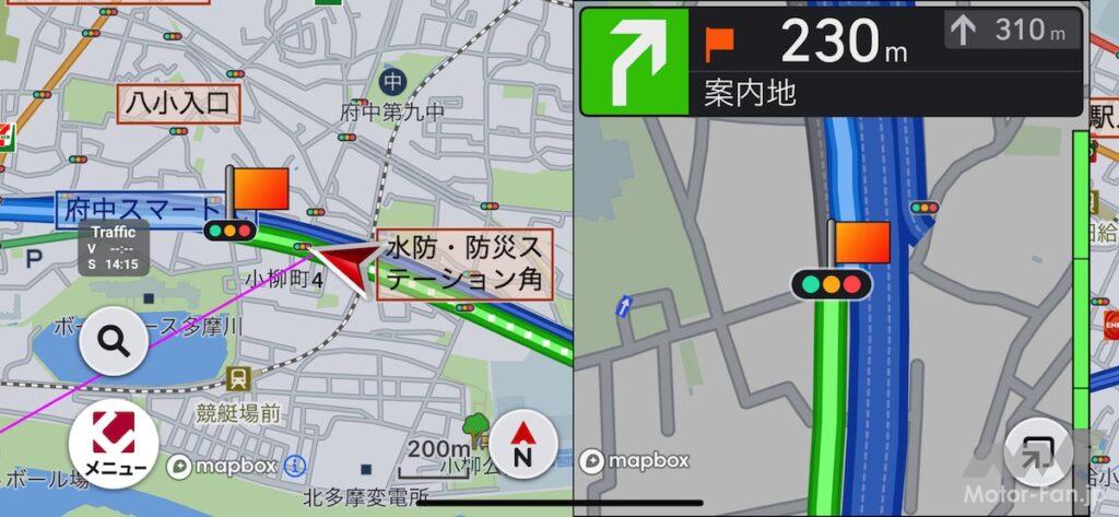 ルート選択については、最新アップデートで「ルート学習探索」機能が追加された。案内とは違うがよく使う道を学習して、ルート検索時にそのルートも考慮される機能。もちろん設定でオン/オフが可能だ。ちなみに、carrozzeria『サイバーナビ』では標準の機能で、ここにもパイオニアの知見が活かされているというわけだ。