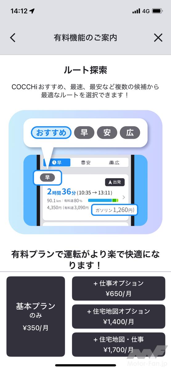 無料版で高速道路を含むナビゲーションを使用してみたわけだが、無料のスマホナビとして使うのであれば全く問題ないと感じた。確かに広告表示が煩わしいケースはあるが、ナビゲーション画面ではあまり表示されず神経質になるほどではないように思える。では、基本プラン(350円/月)を利用するメリットはどこにあるのだろう?
