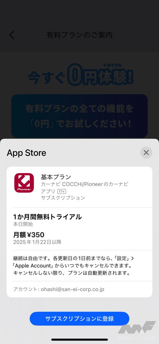 今回は「基本プラン(350円/月)」を選択。「仕事オプション」や「住宅地図オプション」も気になるところだが、前回との整合性と基本プランの機能を確認したい。