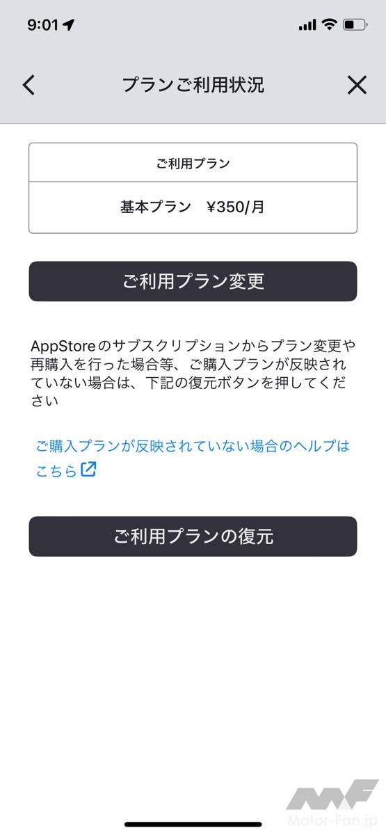 では、改めて基本プランを利用して走ってみる。インストールしてあれば基本プランへの変更は「メニュー」→「アカウント」→「有料プランご利用状況」→「ご利用プラン変更」→「有料プランのご案内」から設定可能。サブスクの支払いなどは各スマートフォンの設定に従うことになる。