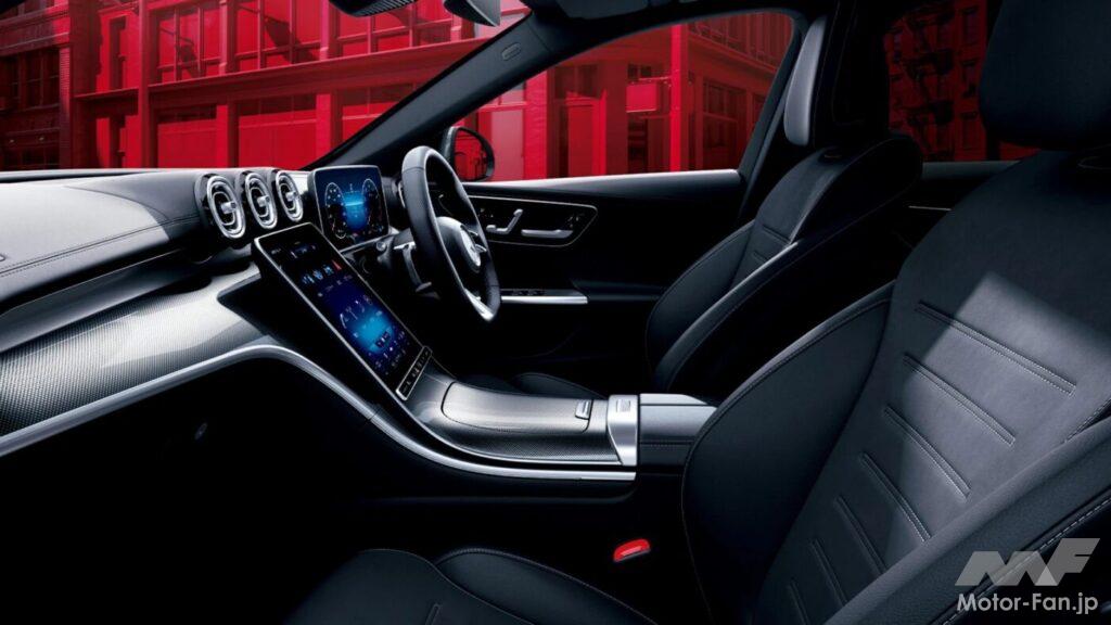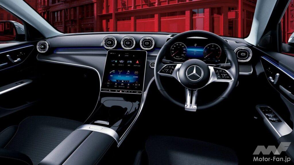 2021年に登場した5代目CクラスのW206型は、前モデルと比べてさらにデジタル化と電動化が進められています。全車にマイルドハイブリッドシステムが搭載され、燃費性能が向上するとともに、エンジンの効率性も高められました。外観は、さらにシャープでモダンなデザインが施され、空力性能の向上によって実用的な燃費の改善にも貢献しています。インテリアは完全にデジタル化されており、センターコンソールには大型のタッチスクリーンが配置され、MBUX(メルセデス・ベンツユーザーエクスペリエンス)システムが搭載されています。このシステムは、音声認識やジェスチャー操作など、最新の操作性を実現しており、ユーザーの利便性を大幅に向上させています。ボディスタイルにはセダンのほかステーションワゴンとSUVライクなオールテレインが用意されています。