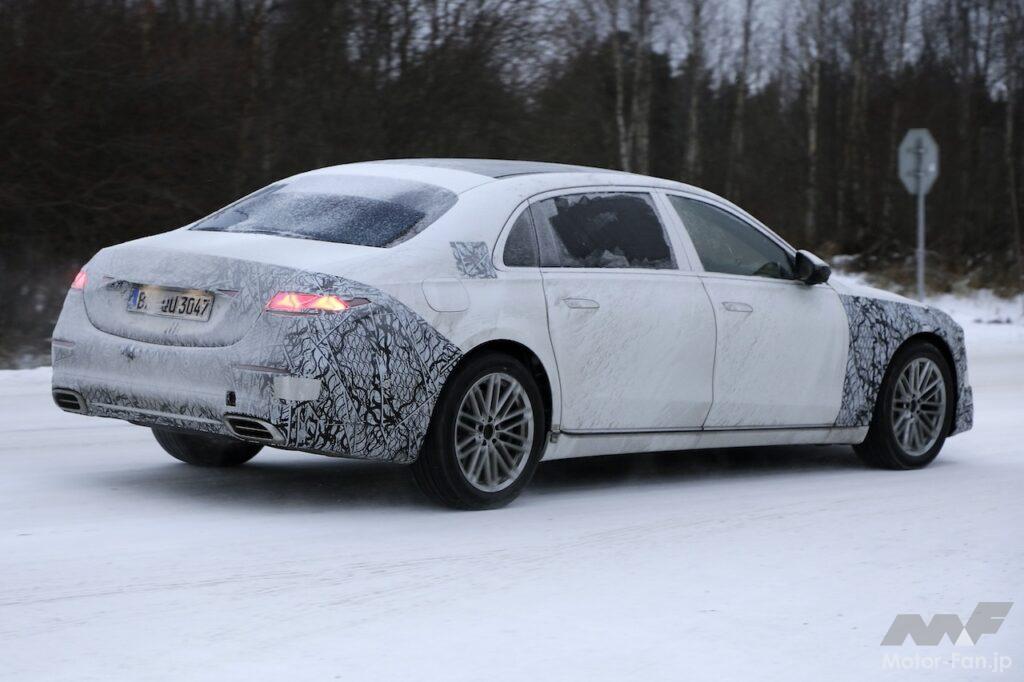 厳冬のスウェーデンで捉えたプロトタイプは、ボディ前後をカモフラージュ。そこが重点的に改良されることを示唆している。フロントエンドでは、3つの星のLEDグラフィックを組み込んだ新しいヘッドライトが装備される。また、マイバッハ特有のパターンを持つ大型のグリルが下部まで巨大化されていることがはっきりとわかるほか、派手なバンパーインテークが加わると思われる。
